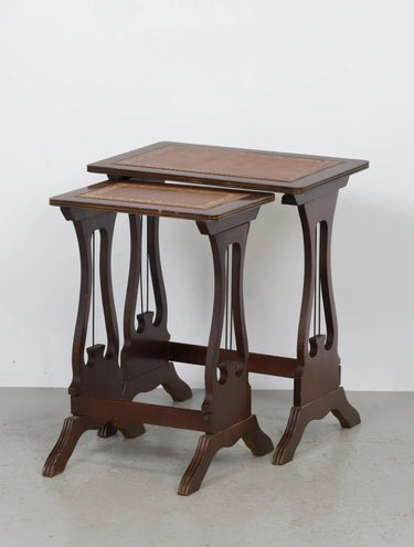 1960 - 70年代 ヴィンテージ レザートップ 2 サイズ ネスティング サイドテーブル