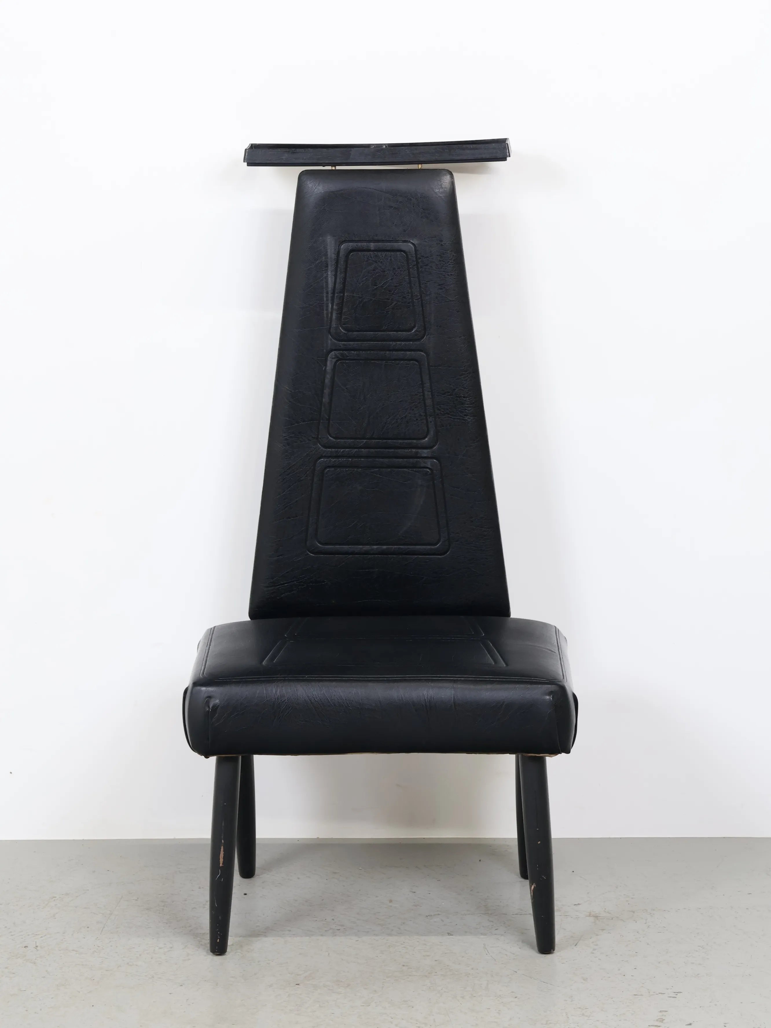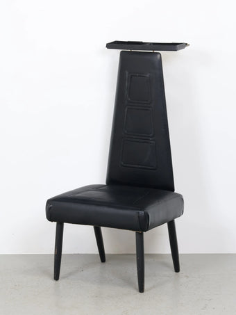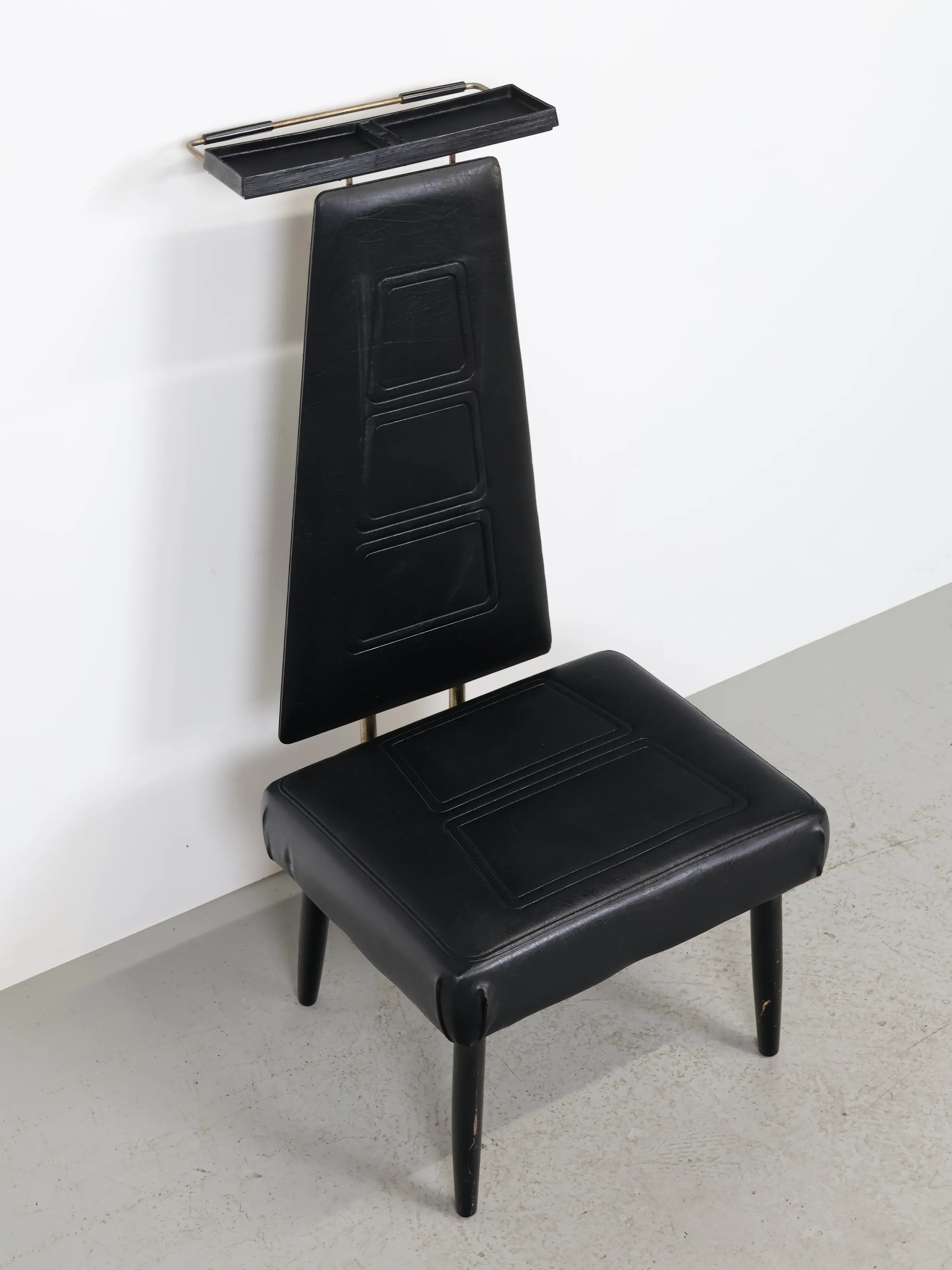50年代に誕生したバレットチェアは、ジャケットとパンツを掛け、身の回りの小物類までトレイに収納することができる利便性の高いアイテム。