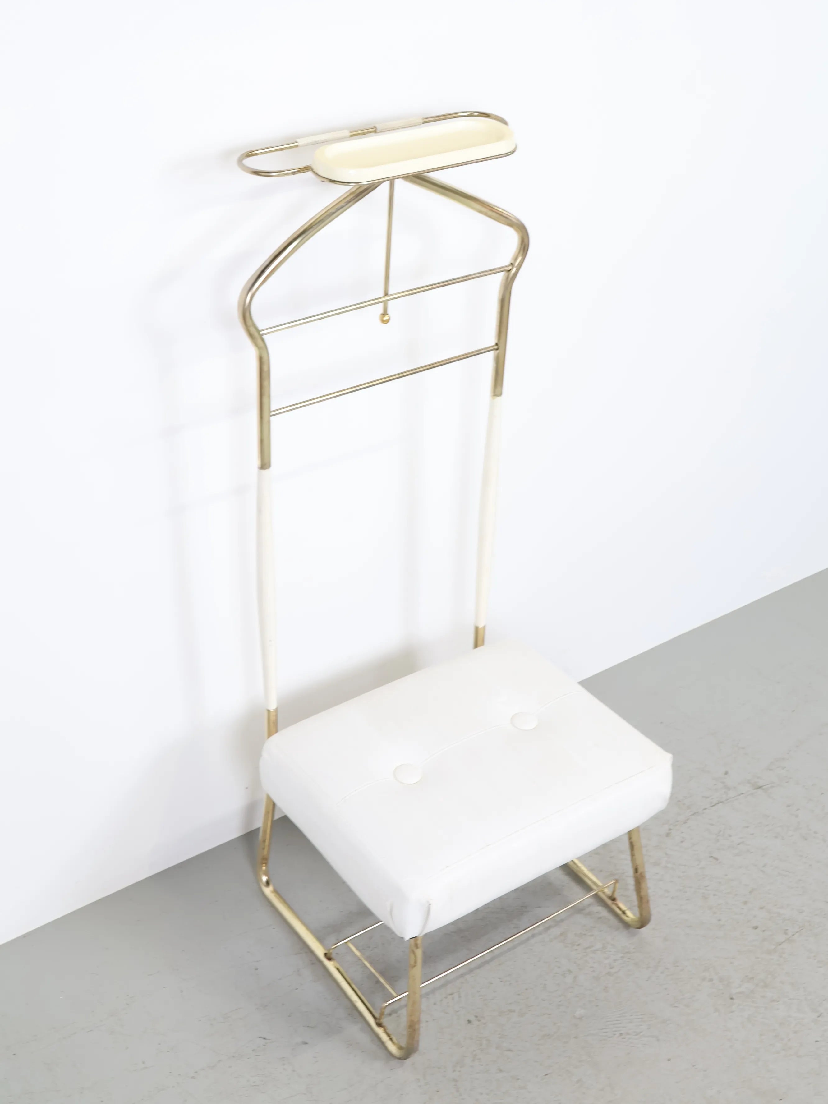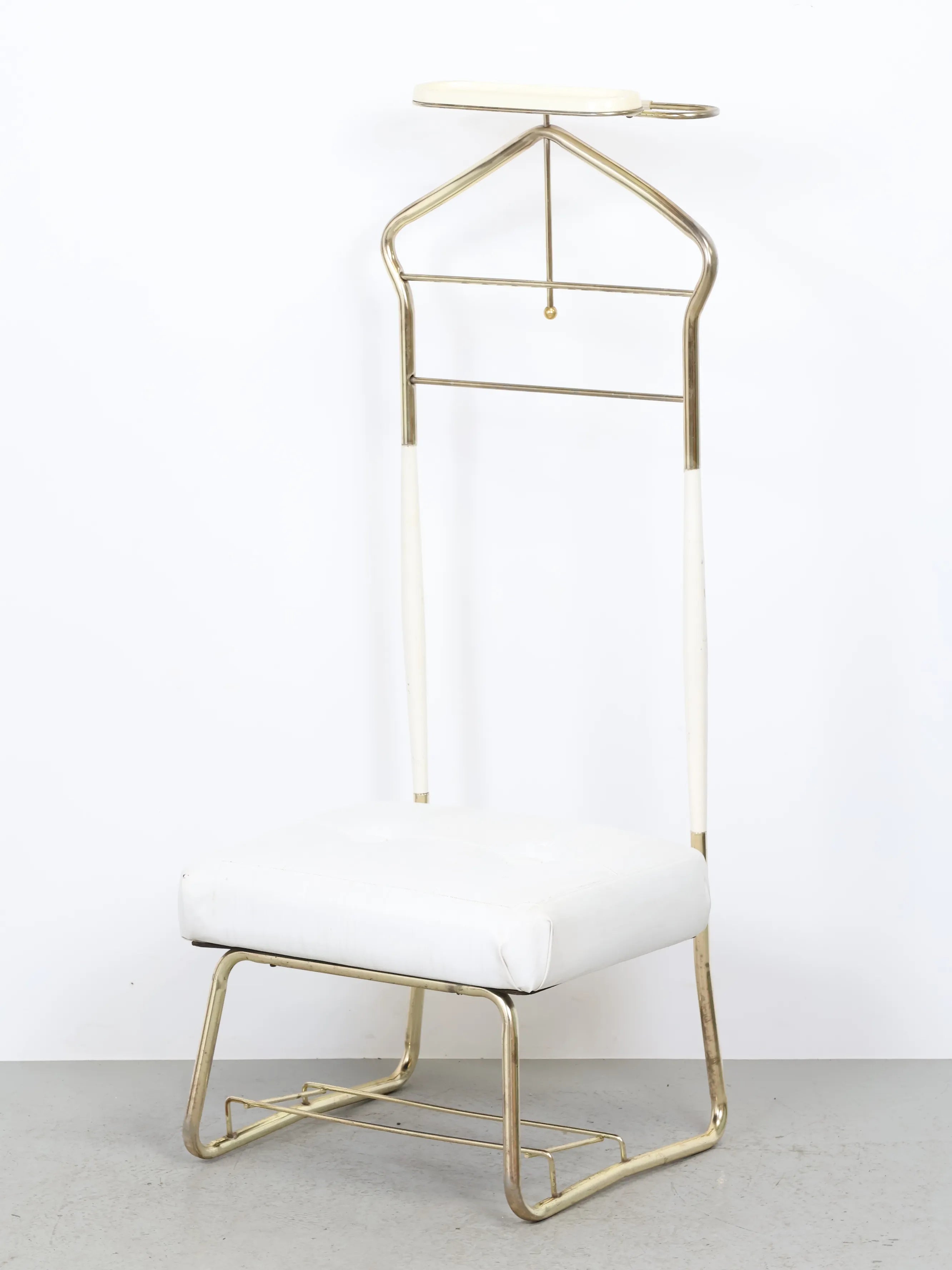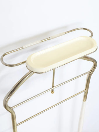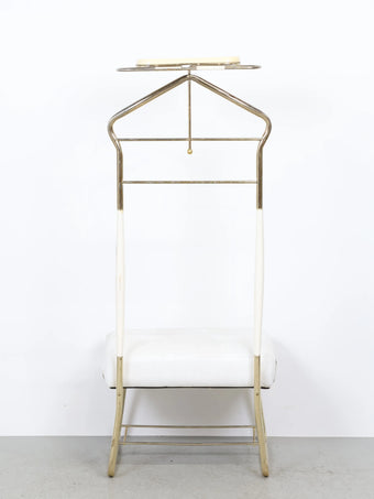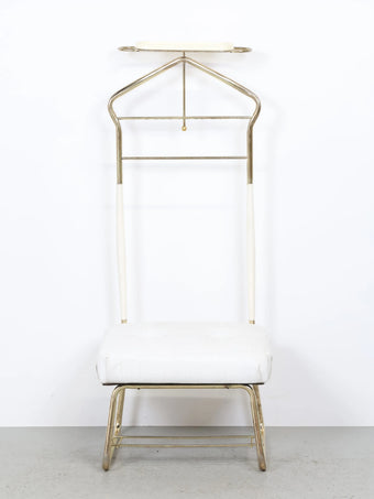 50年代に誕生したバレットチェアは、ジャケットとパンツを掛け、身の回りの小物類までトレイに収納することができる利便性の高いアイテム。