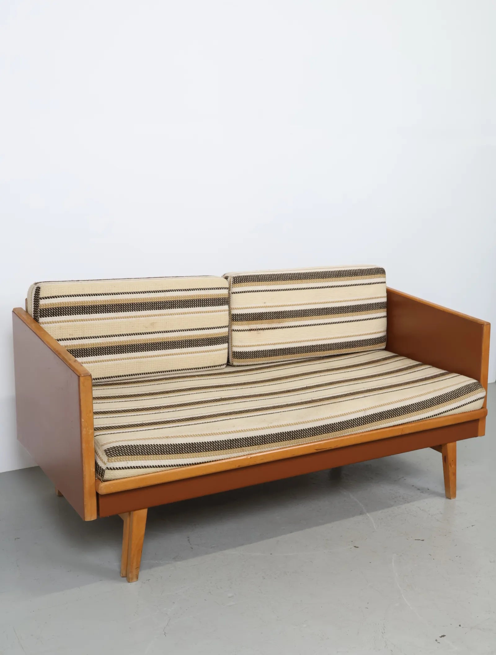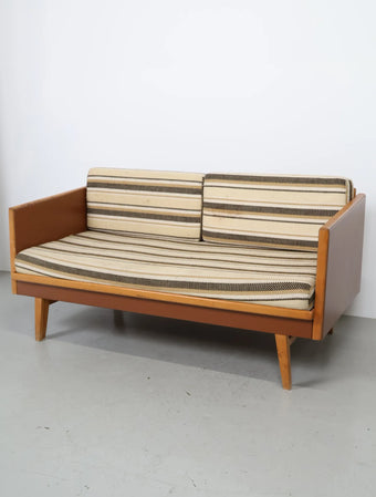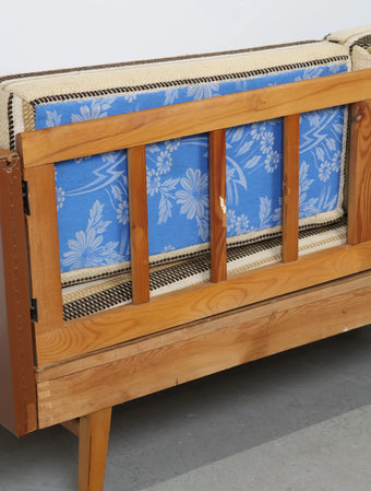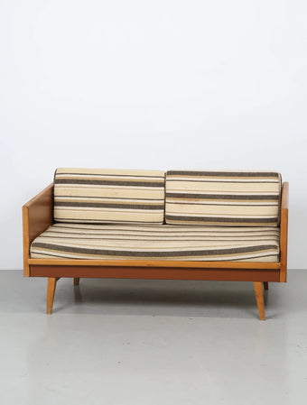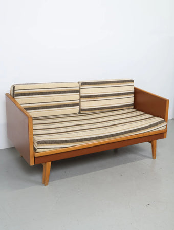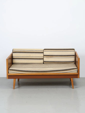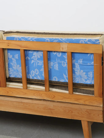 ヨーロッパより買い付けました1970年代のウッドフレーム2シーターソファです。