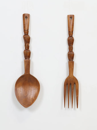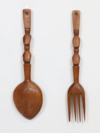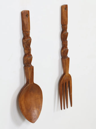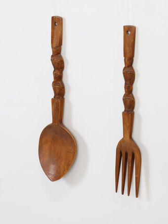 1970年代 ヴィンテージ ウッド スプーン & フォーク ウォールデコ