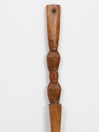 持ち手部分にはトライバル調のフェイスモチーフが彫り込まれており、当時ならではのプリミティブで温かみのあるデザインが魅力です。