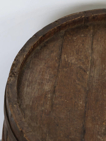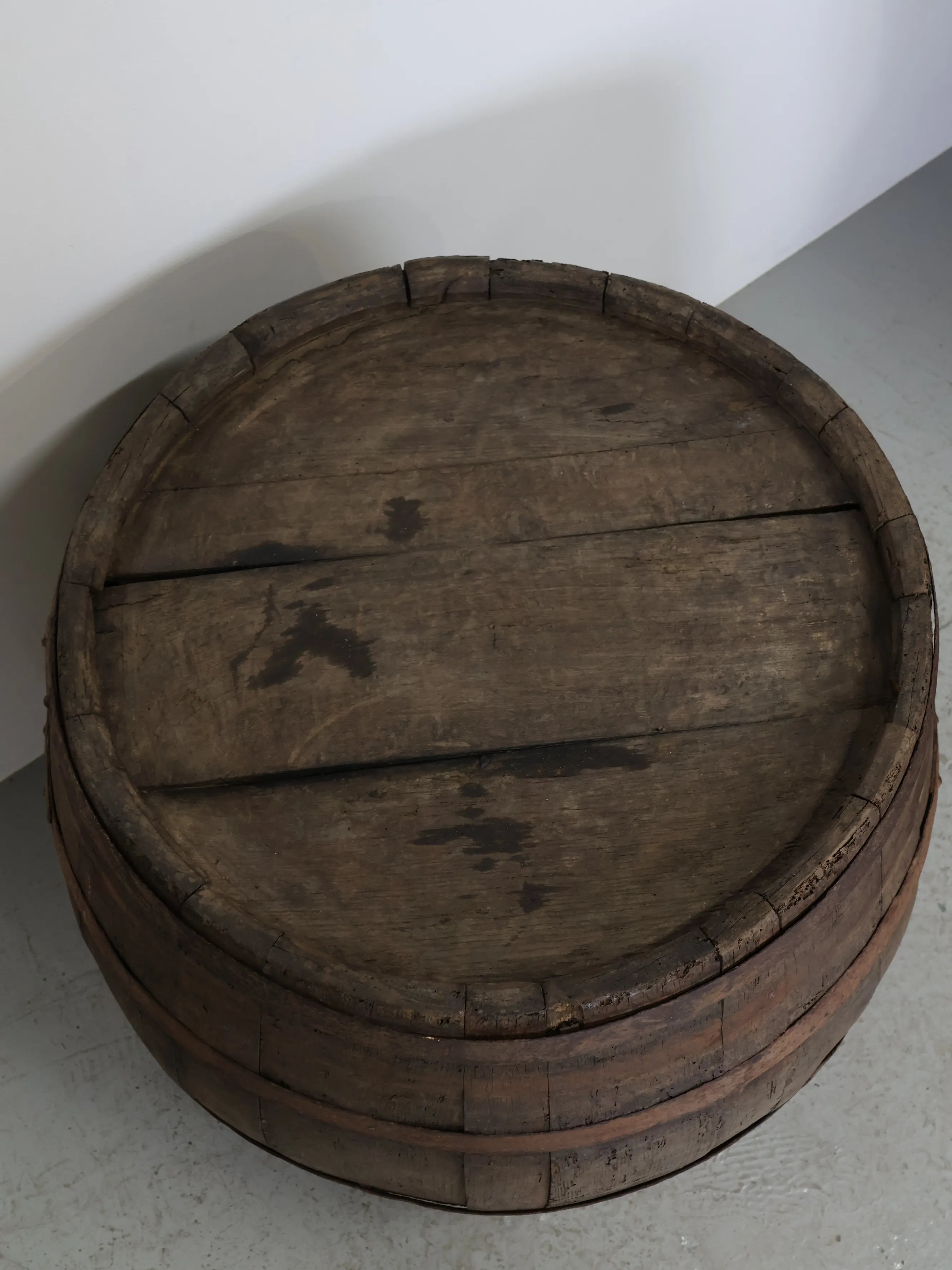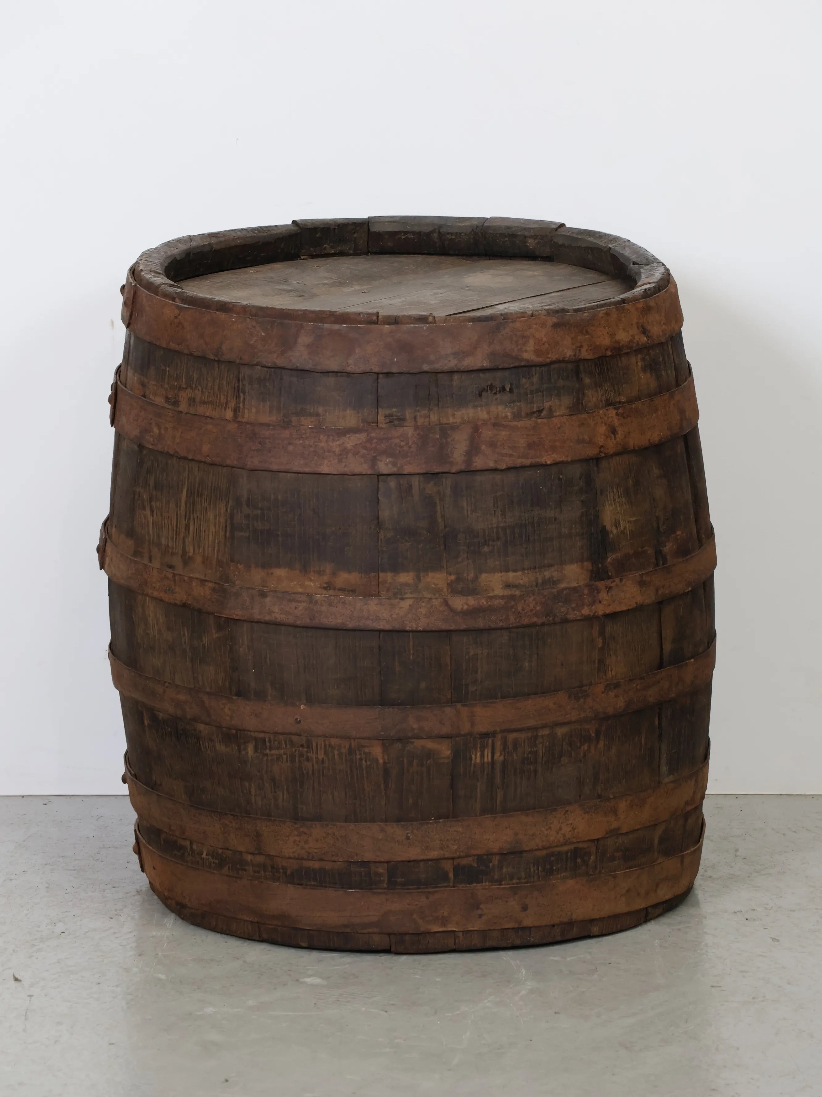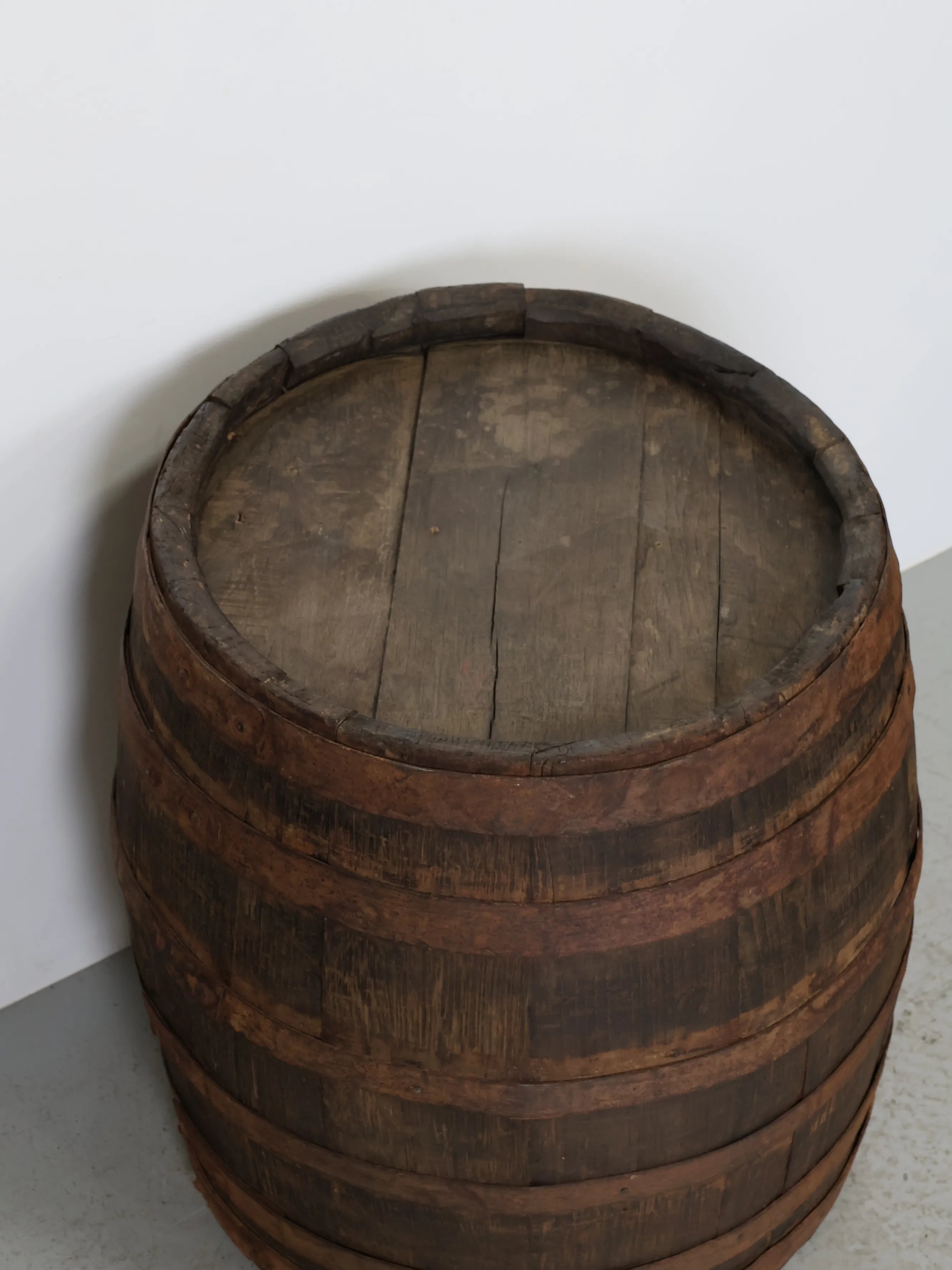 長い年月を経て深みを増した木肌と錆びた鉄帯が、ヴィンテージならではの風格ある表情を生み出しています。