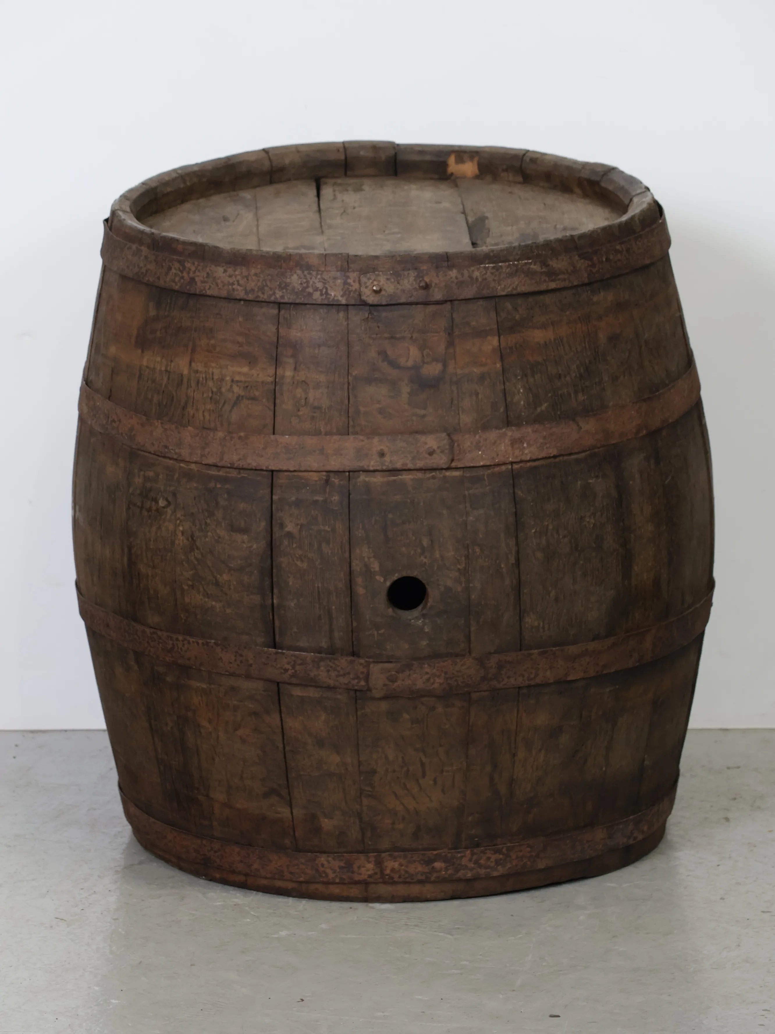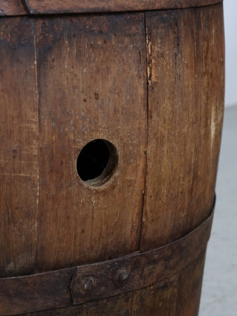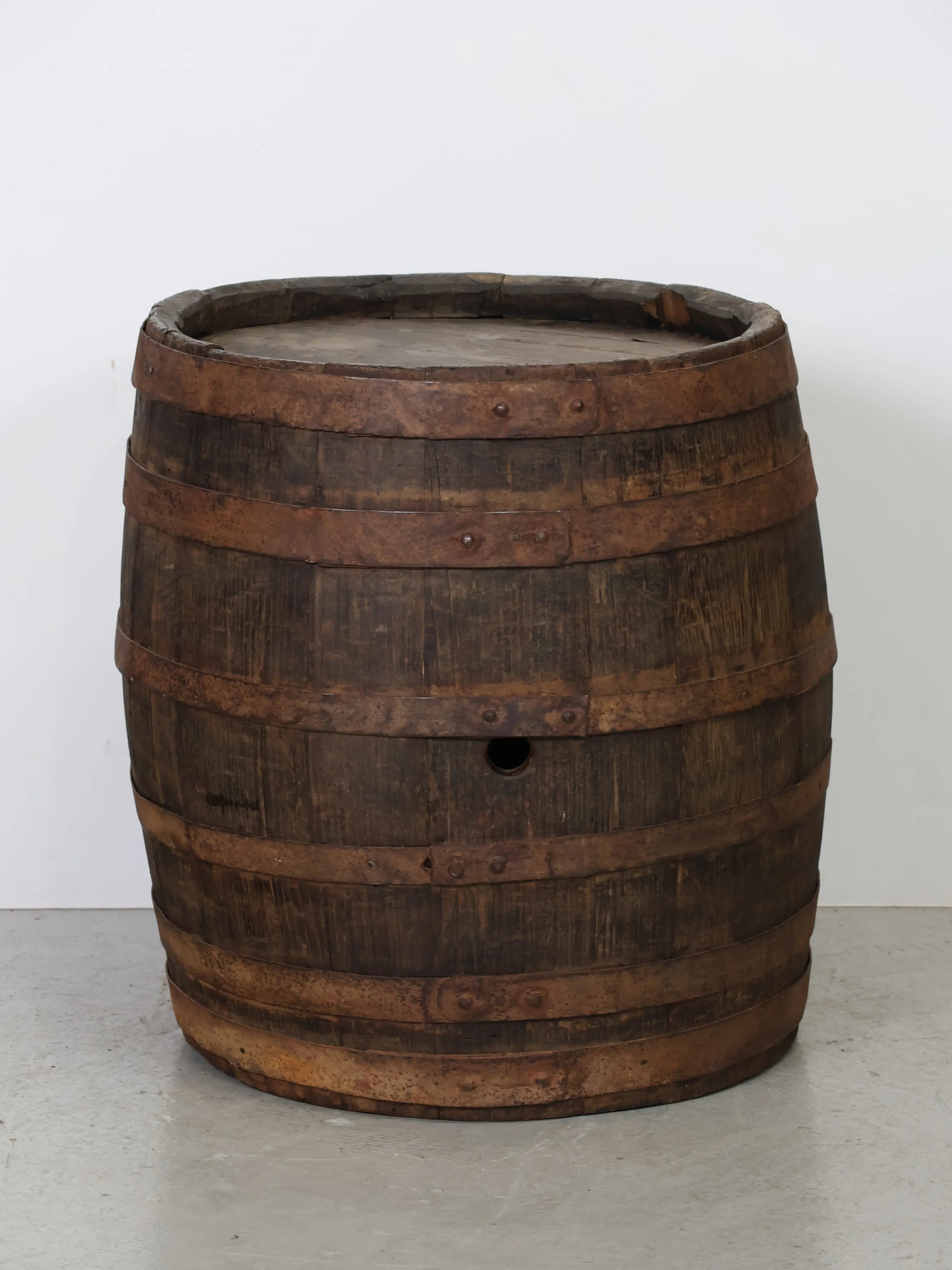 側面には樽特有のバングホール(栓穴)が残っており、実際に使用されていた痕跡を感じられるディテールも魅力のひとつ。