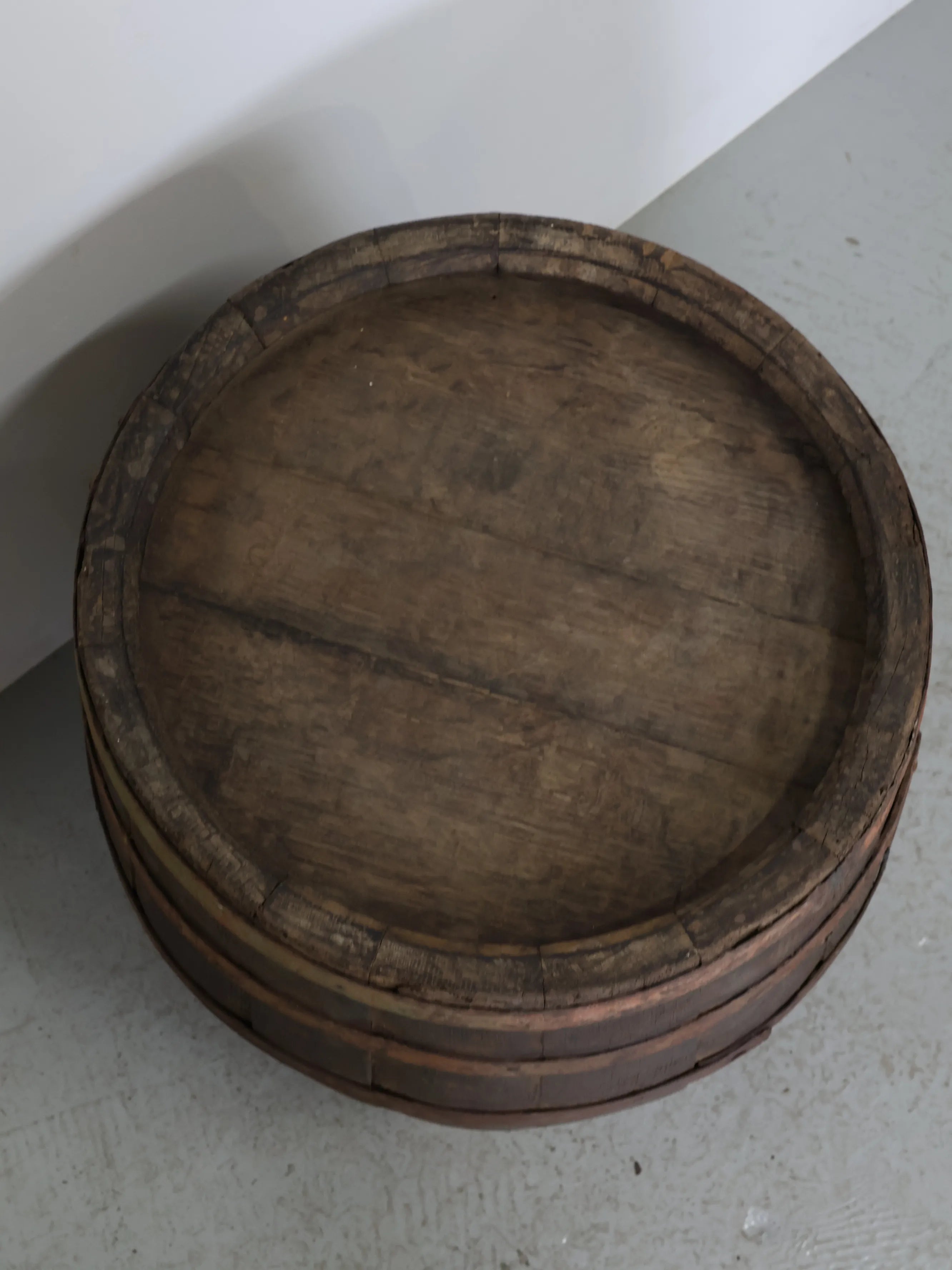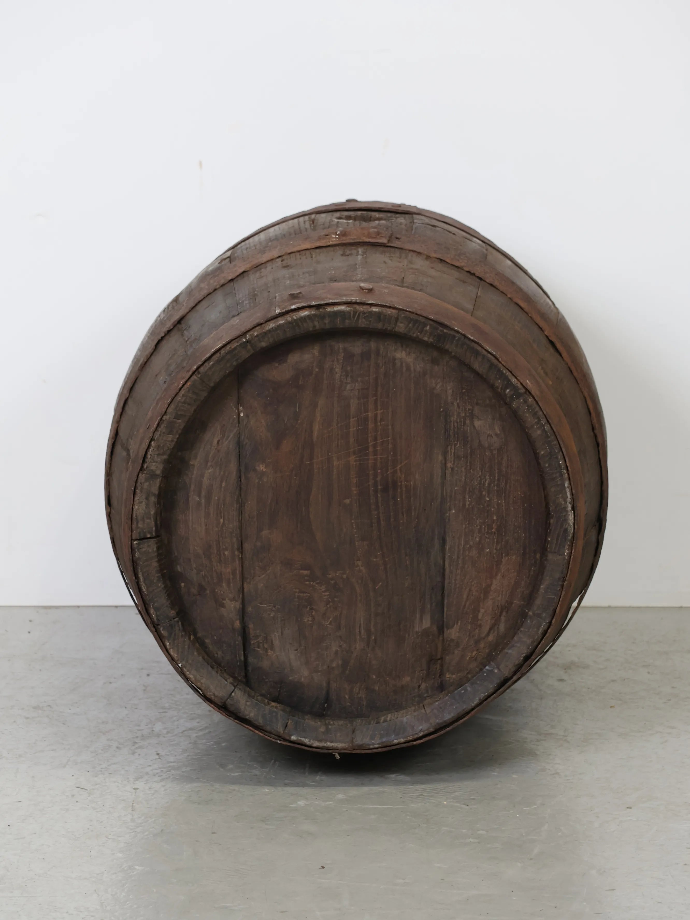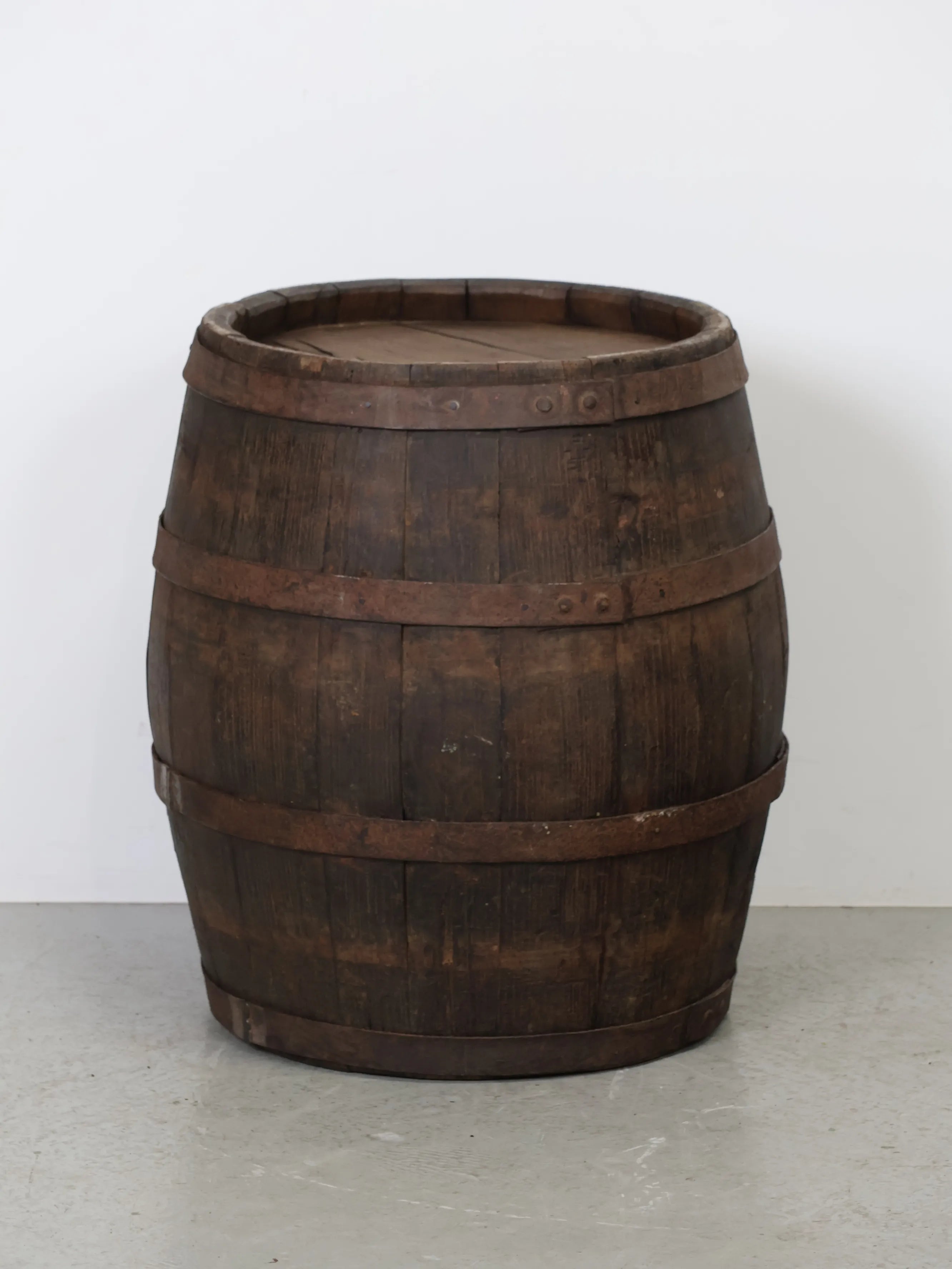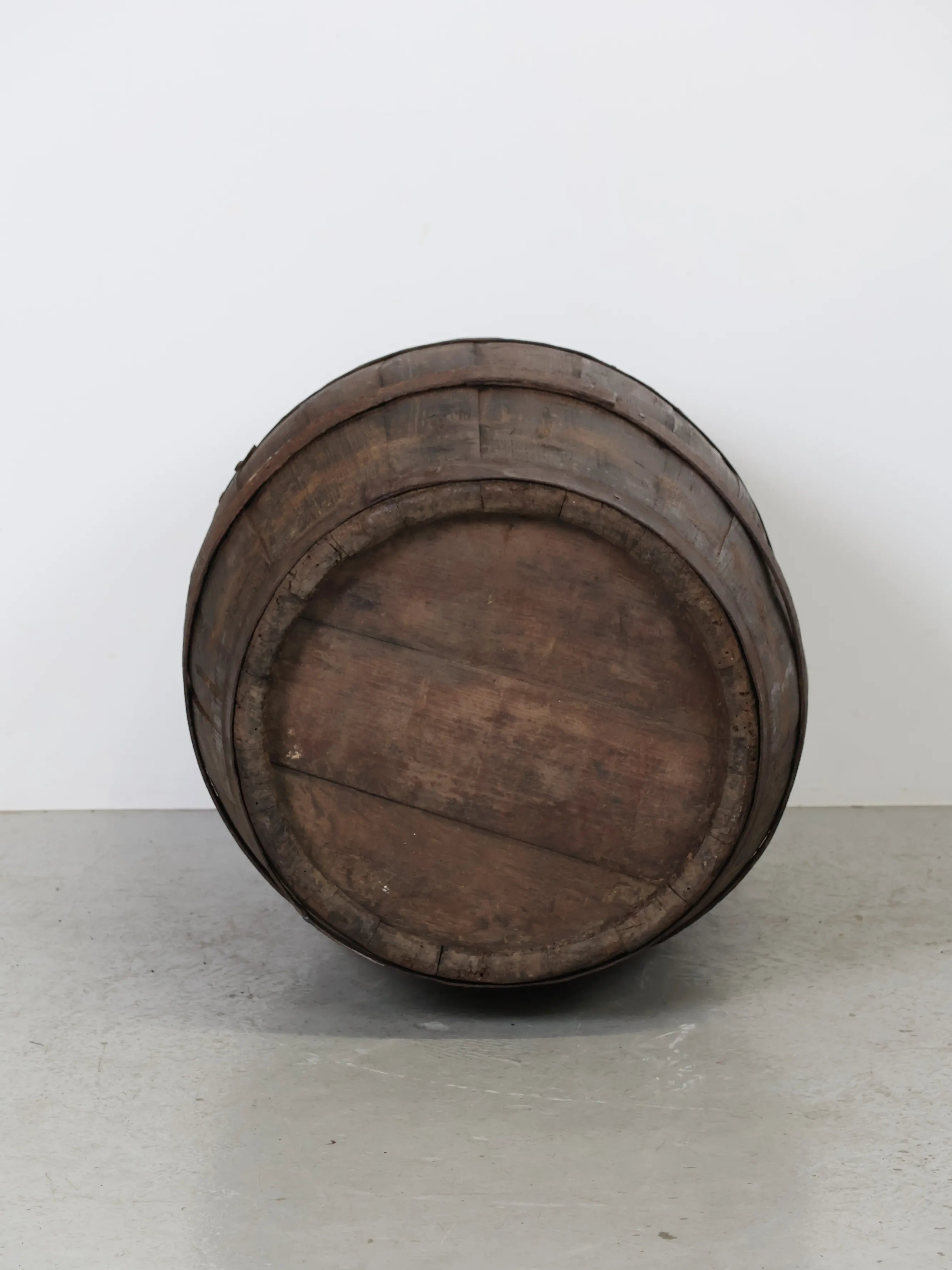 長い年月を経て深みを増した木肌と錆びた鉄帯が、ヴィンテージならではの風格ある表情を生み出しています。