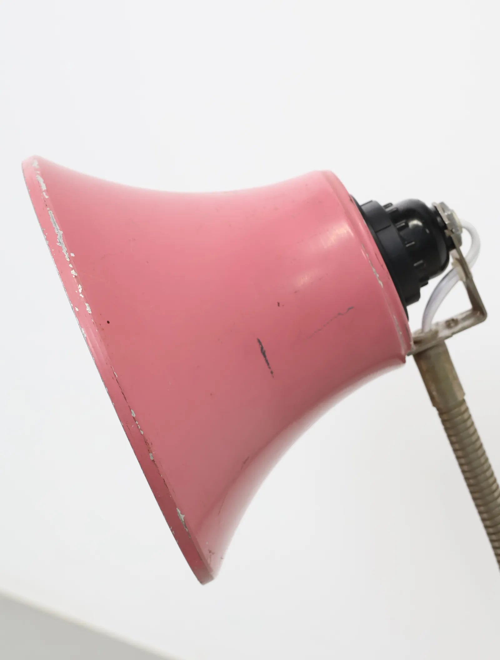 ヨーロッパより買い付けました1970年代のピンクメタルグースネックデスクランプです。