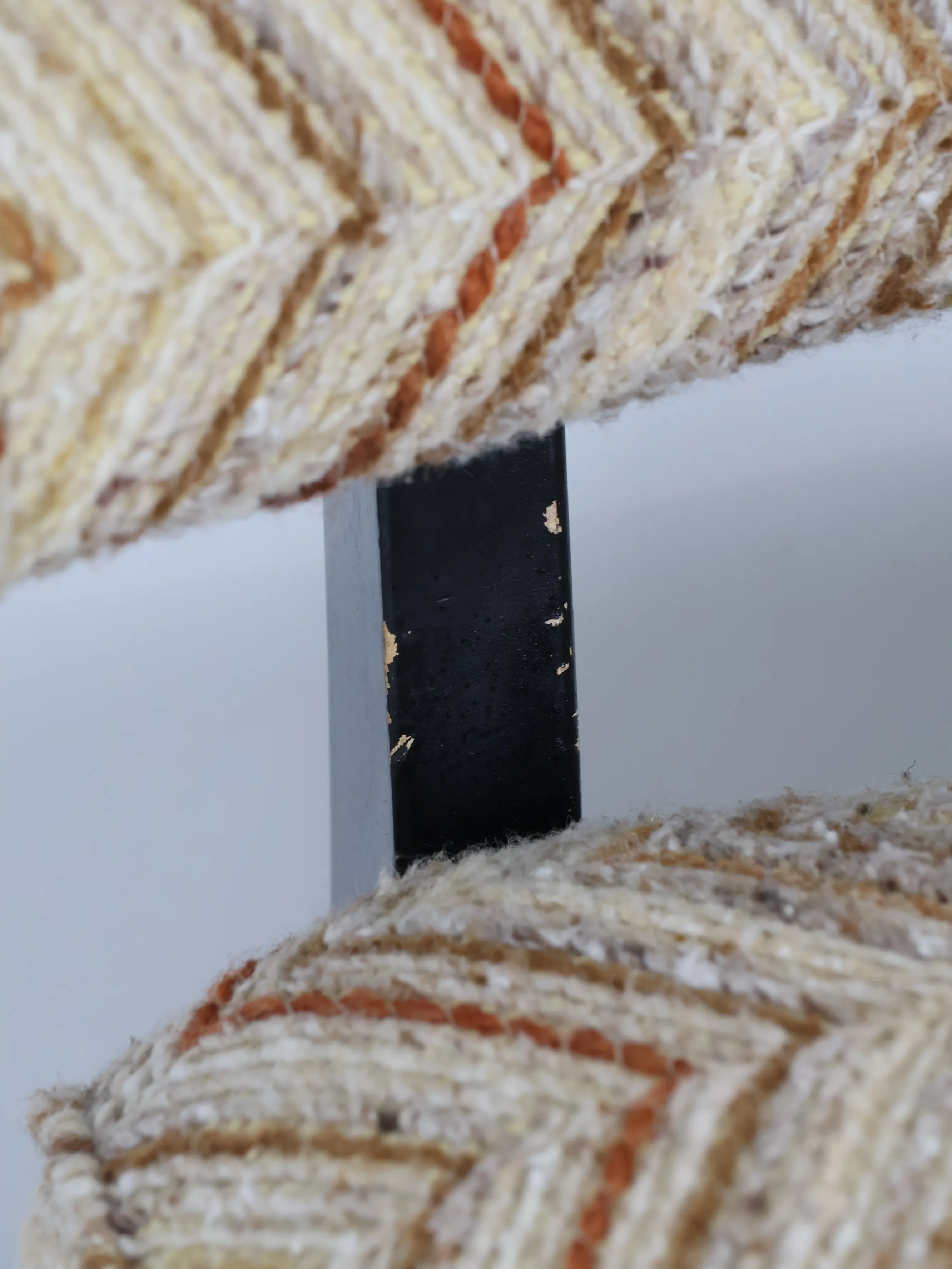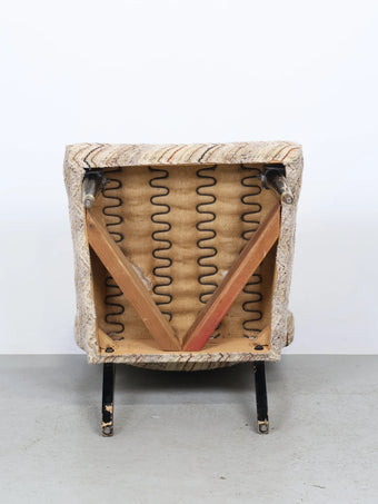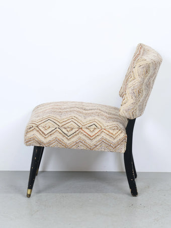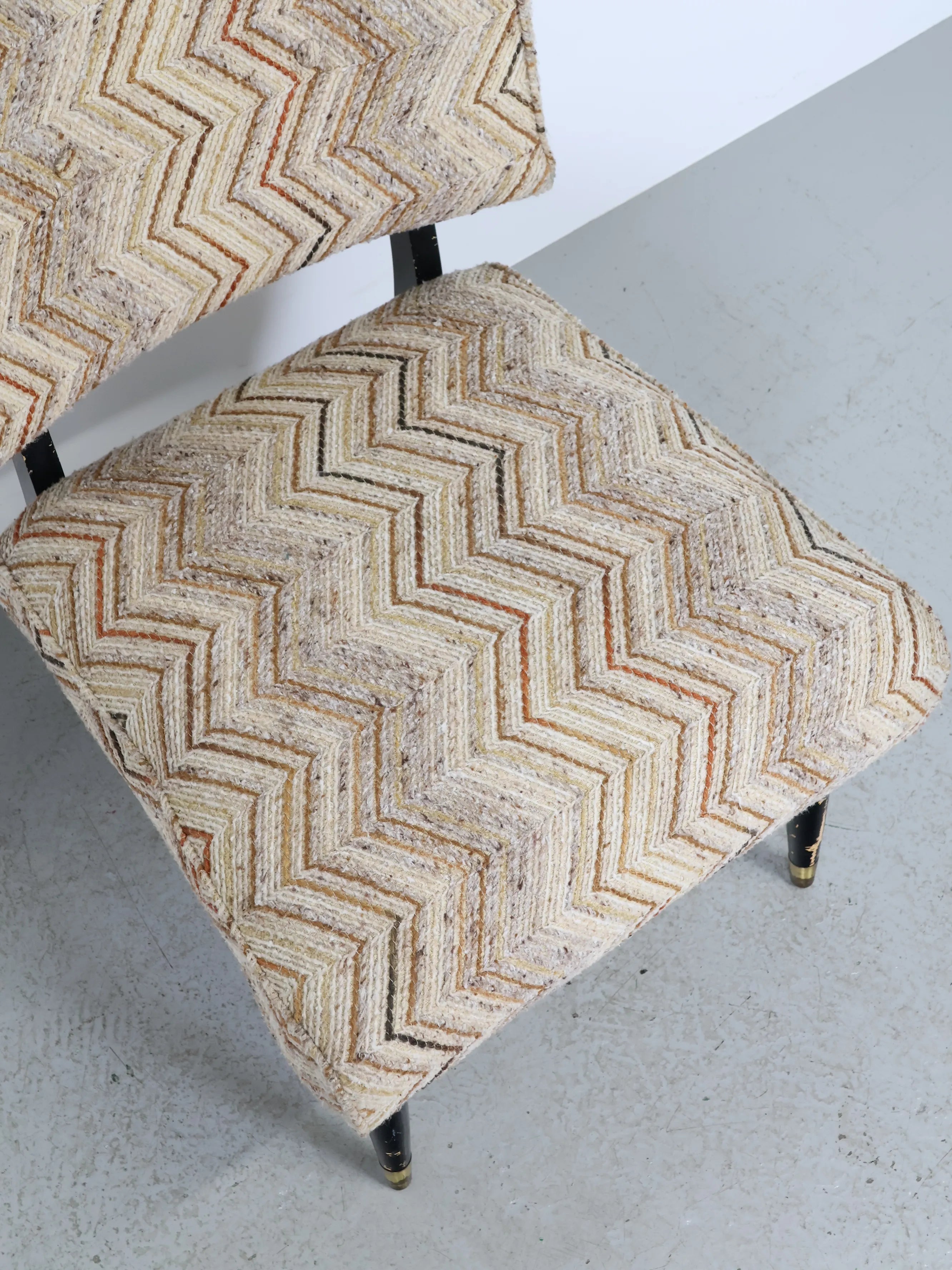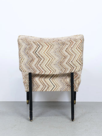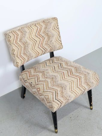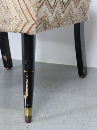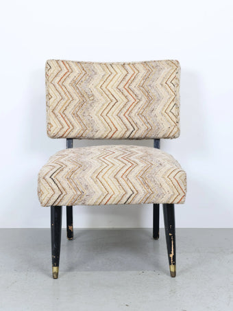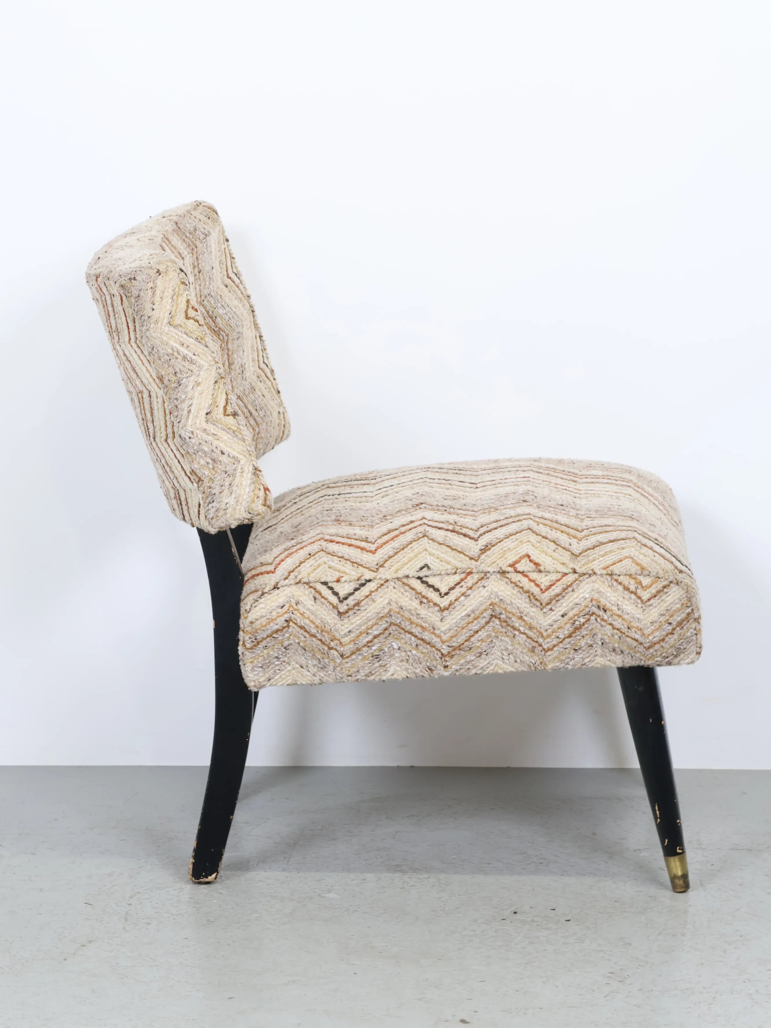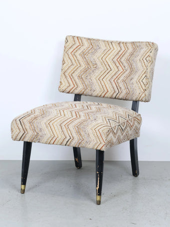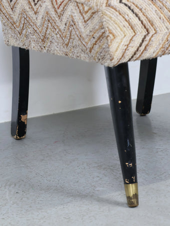 ジグザグ柄が入ったやや起毛感のあるオリジナルファブリックに、ブラックのテーパードした脚がヴィンテージならではのデザイン。