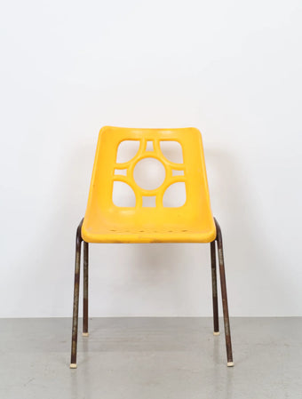 1970年代 ヴィンテージ メタルフレーム イエロープラスチック チェア イス