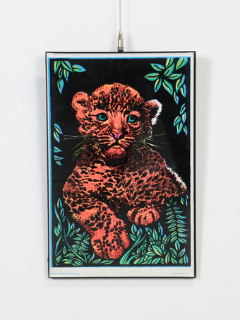 1970年代 ヴィンテージ メタルフレーム レオパード ブラックライト ポスター