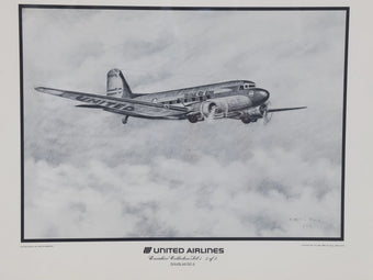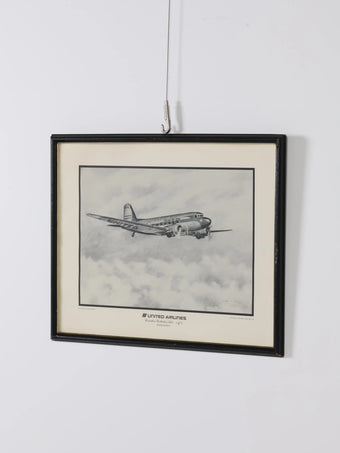 1970年代 ヴィンテージ Ken Fox United Airlines Douglas DC-3 デッサン
