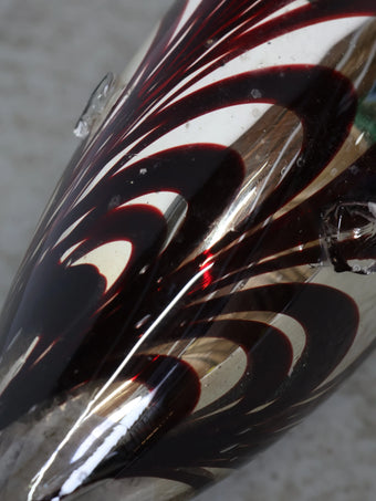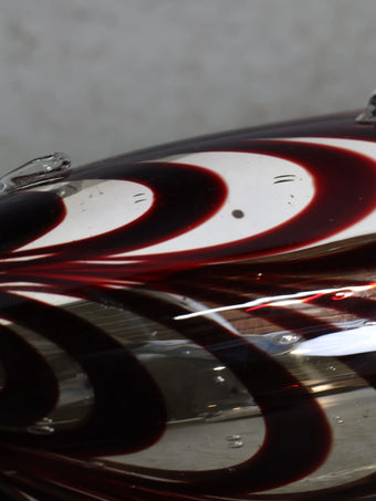 イタリア・ムラーノ島で製作されたムラーノガラス特有の技法によって生み出された流れるようなストライプ模様が印象的な一点。