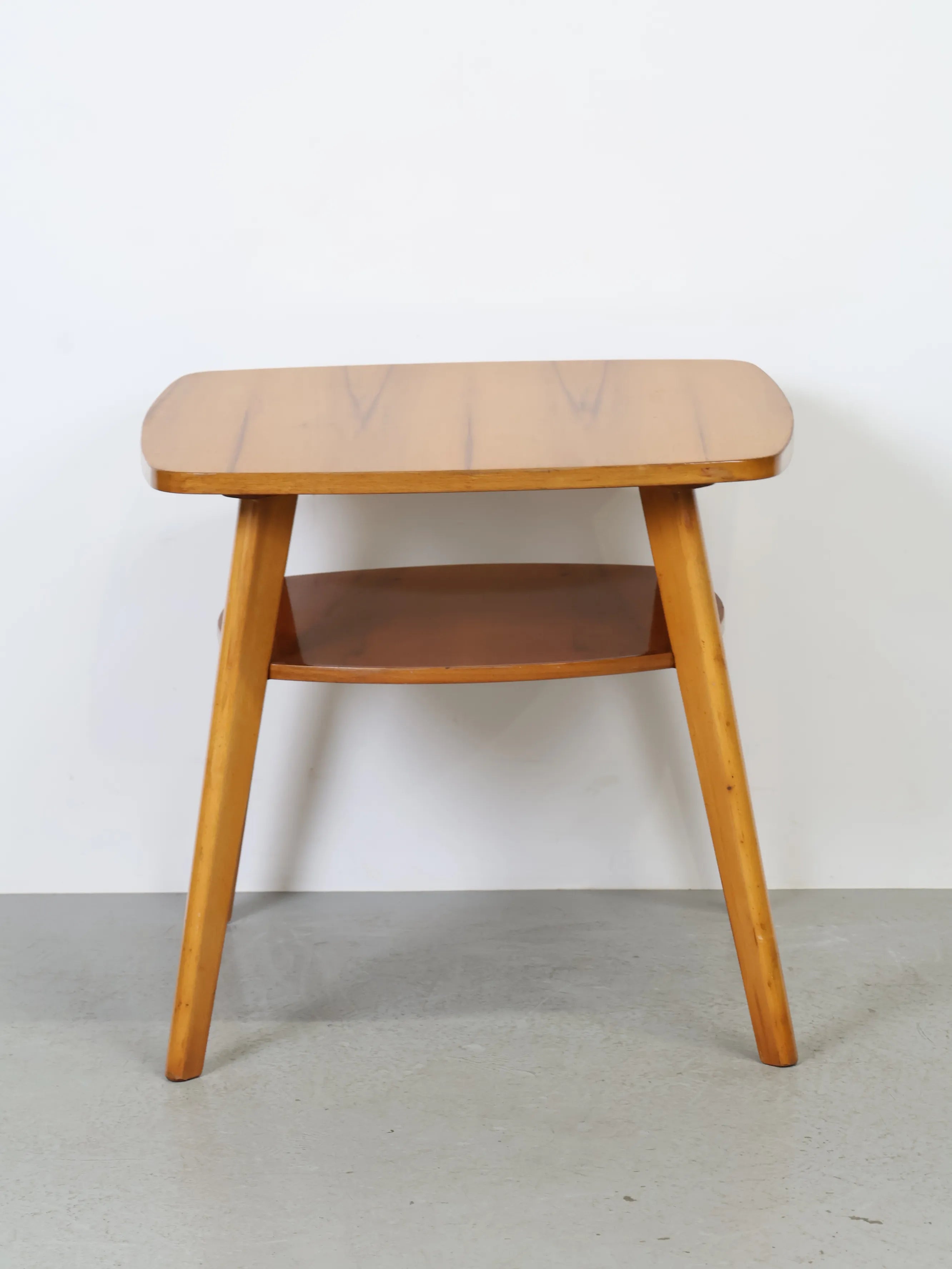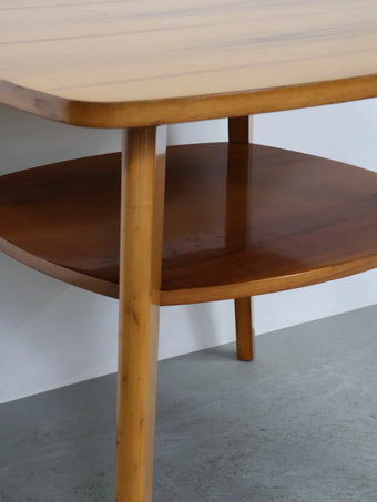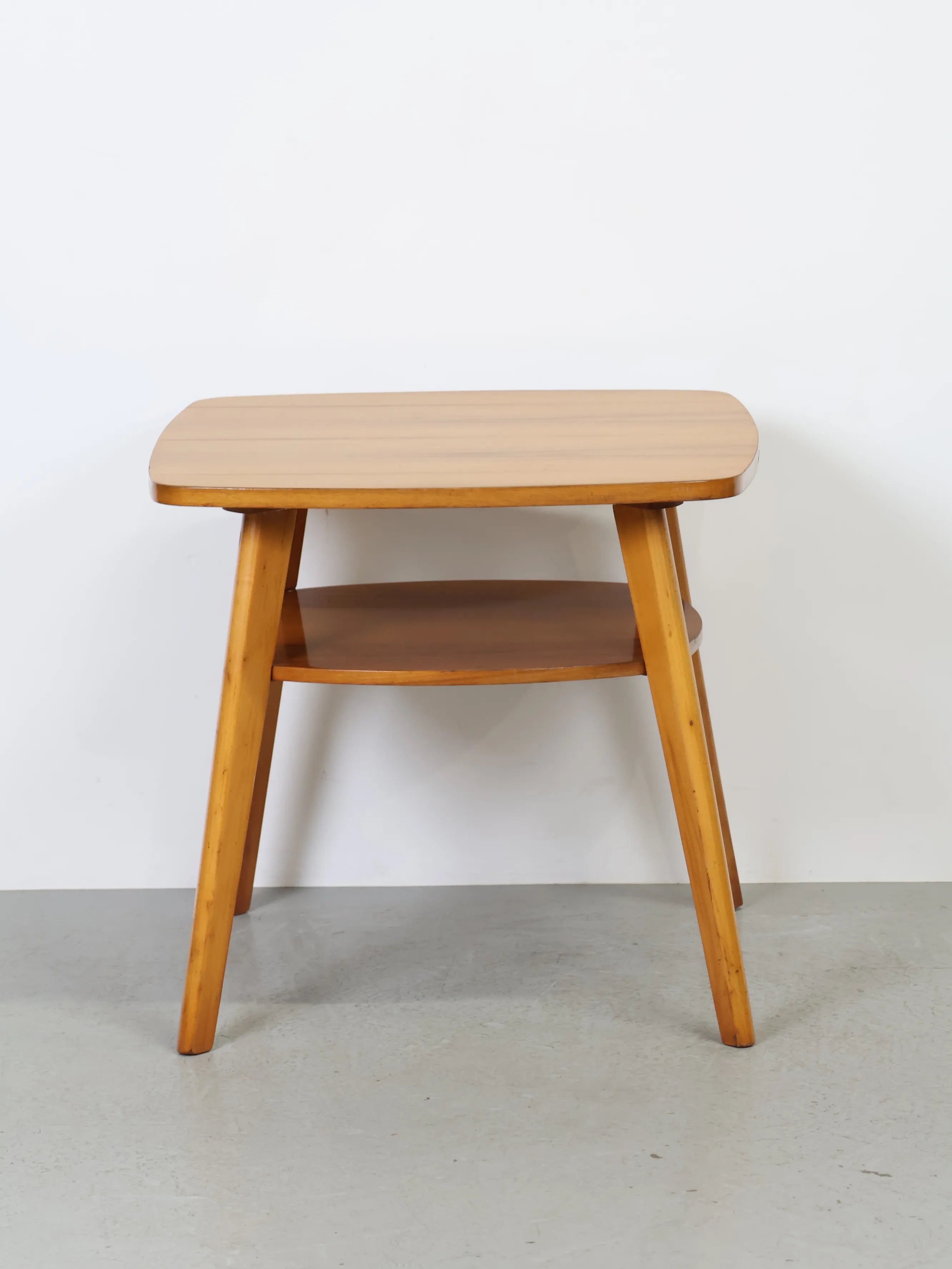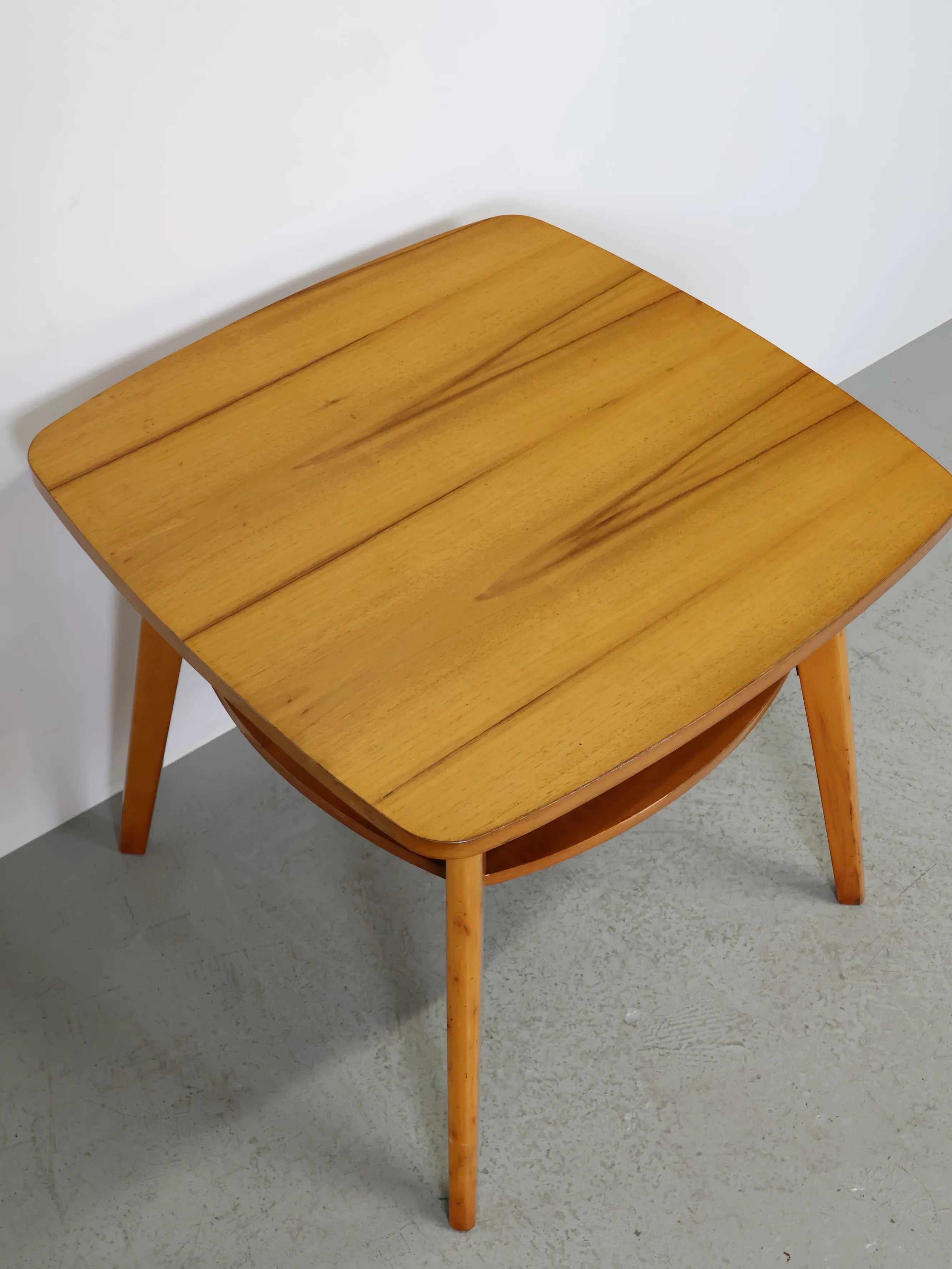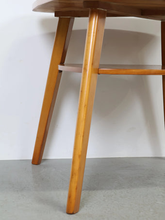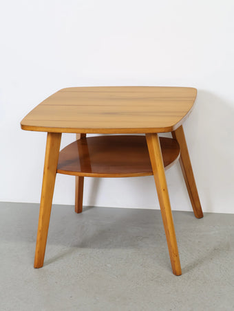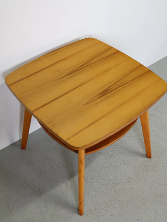 ハンガリーより買い付けました、明るい色合いのウッドとすっきりとしたフォルムが印象的なヴィンテージウッドサイドテーブルです。