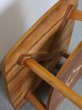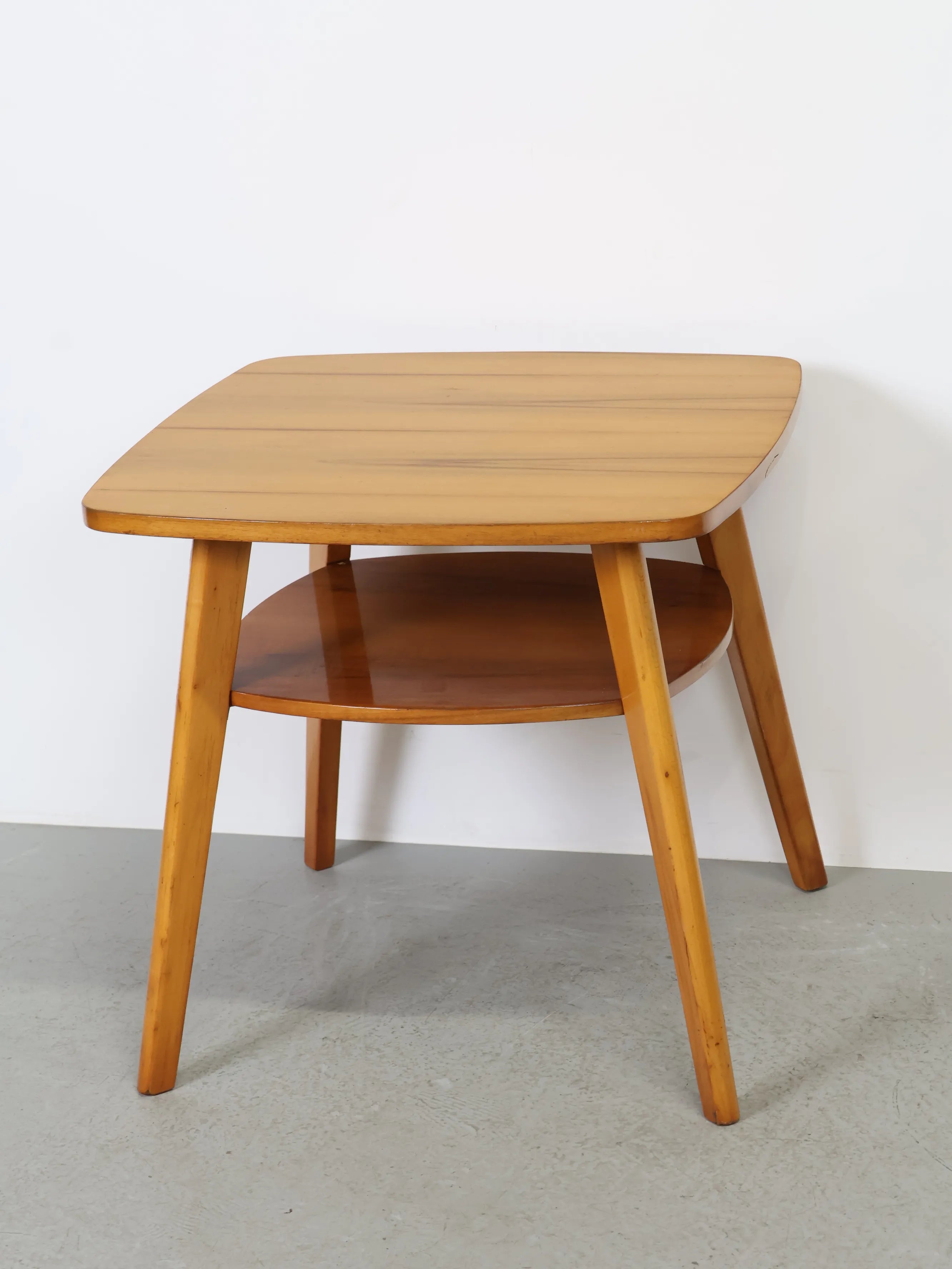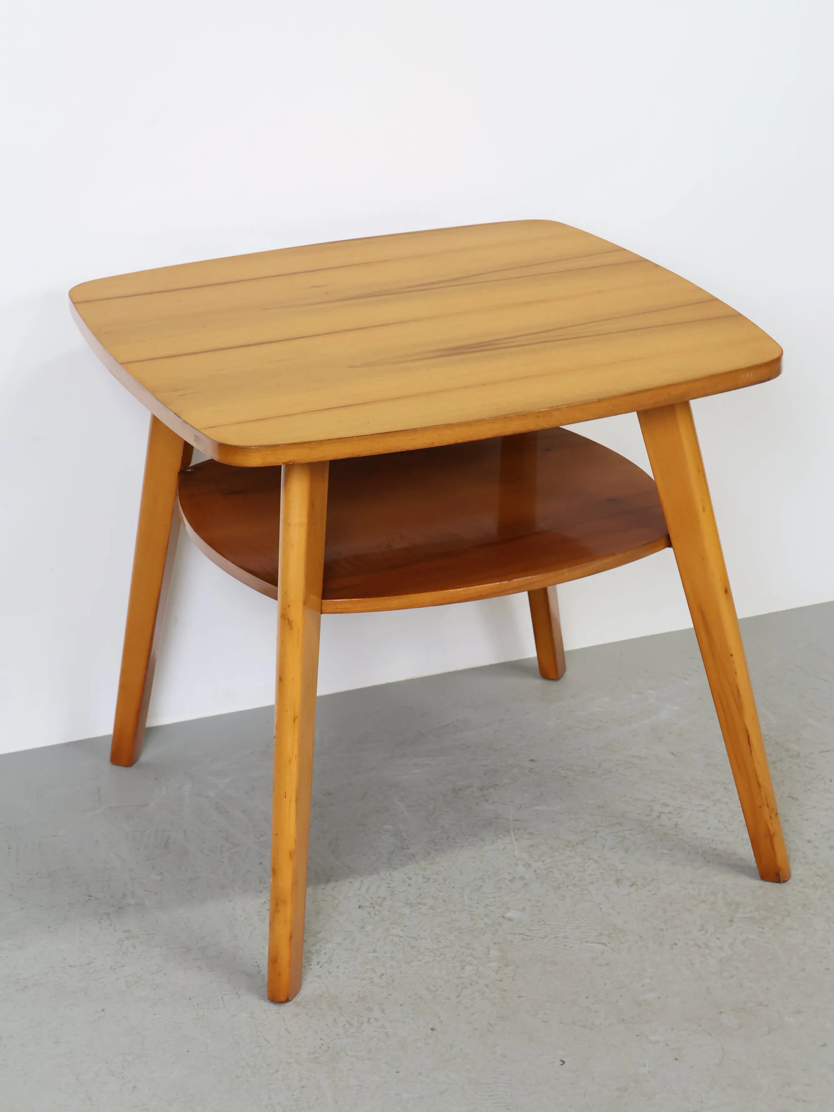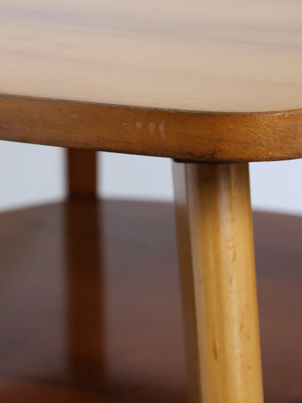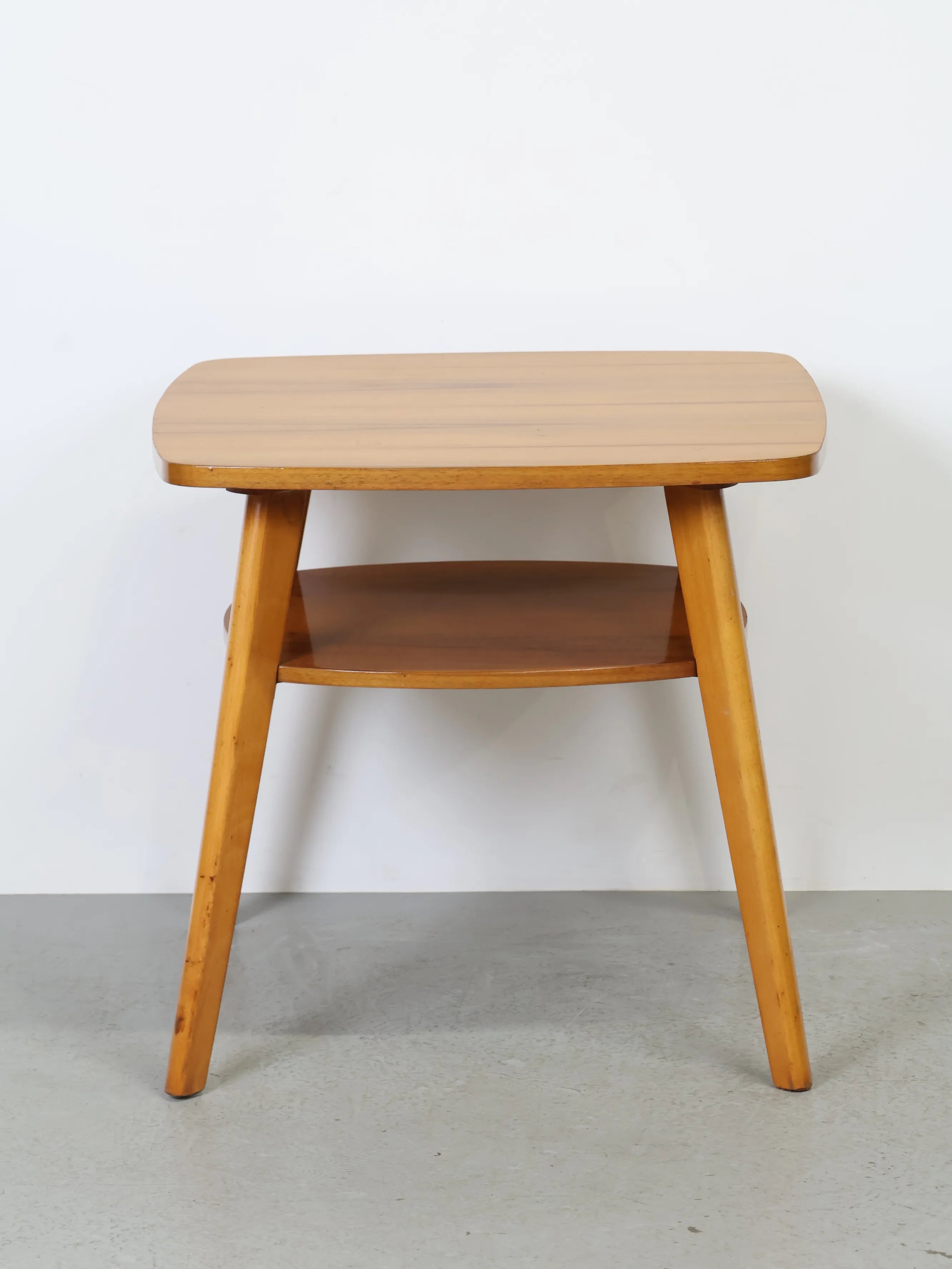 ハンガリーより買い付けました、明るい色合いのウッドとすっきりとしたフォルムが印象的なヴィンテージウッドサイドテーブルです。