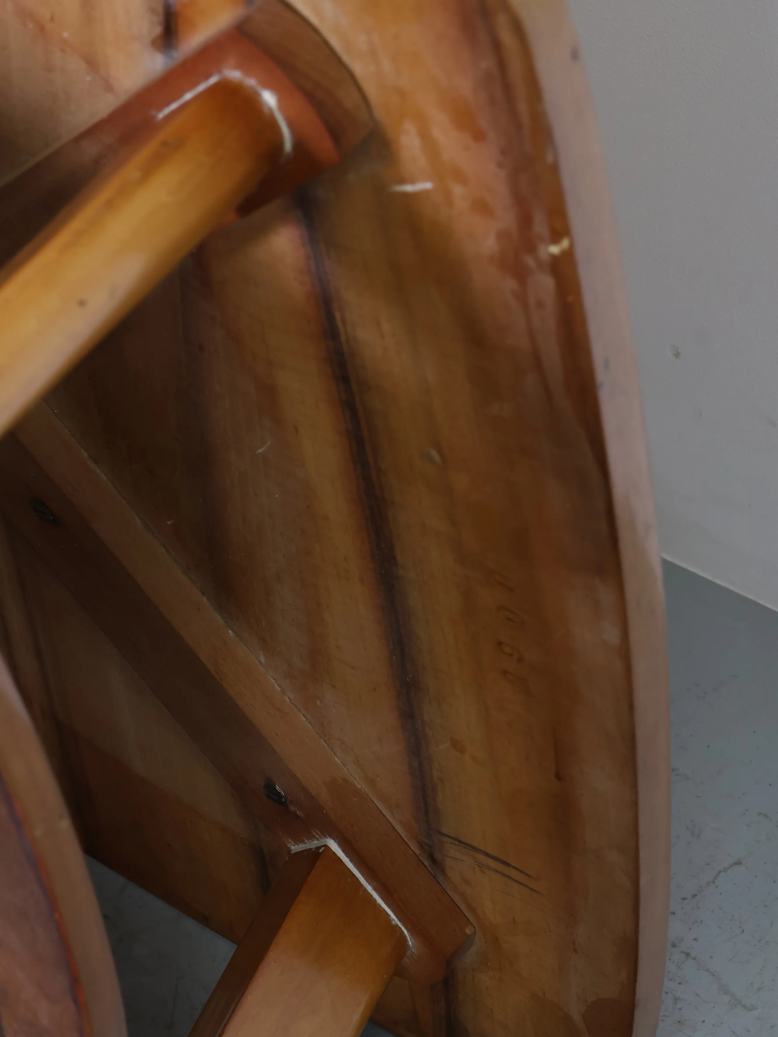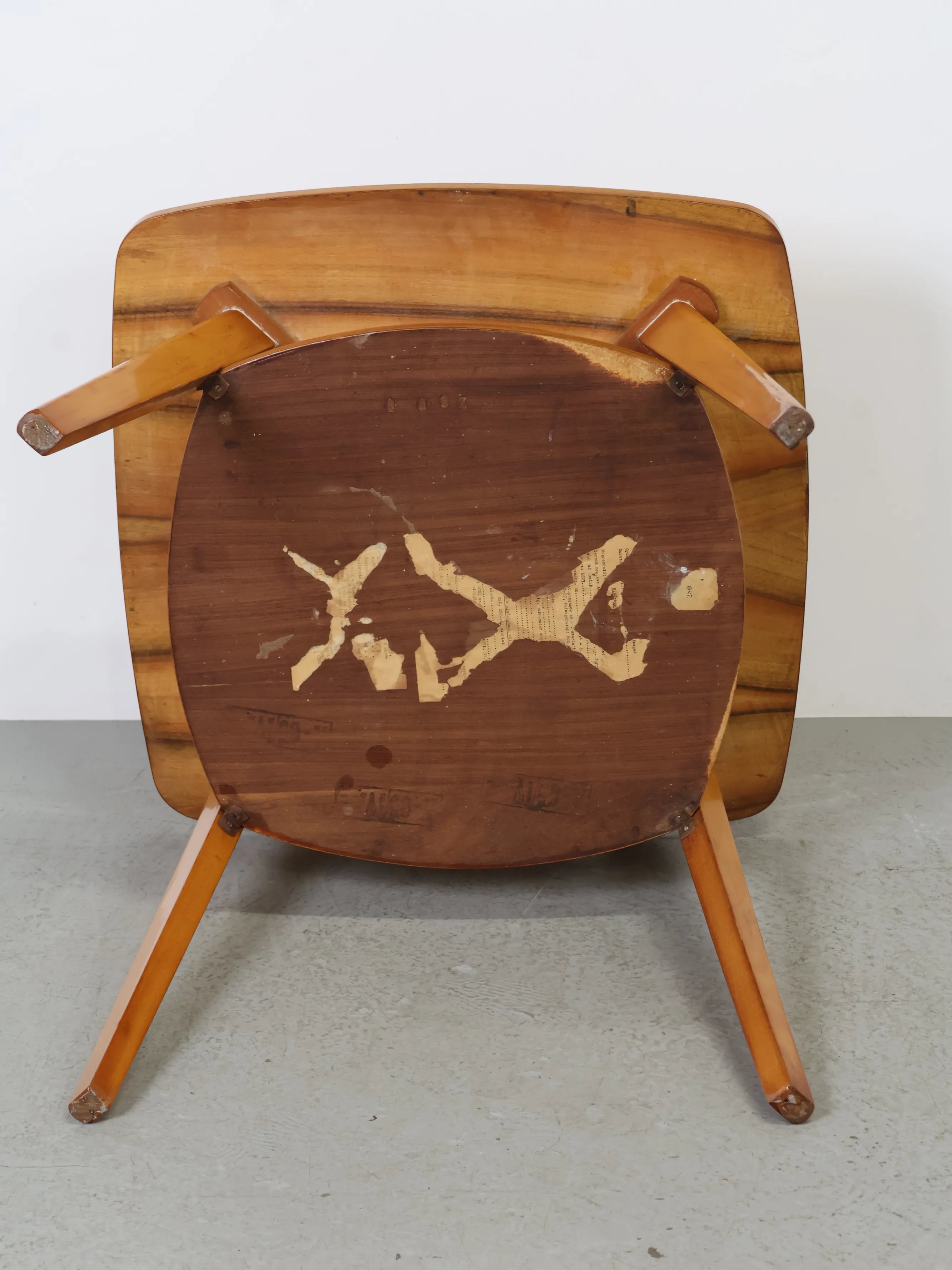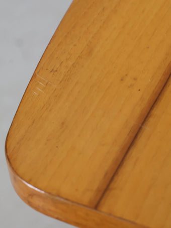 緩やかに広がる脚部とカーブを描く輪郭の天板が、ミッドセンチュリー期の家具らしい軽やかな雰囲気を感じさせます。