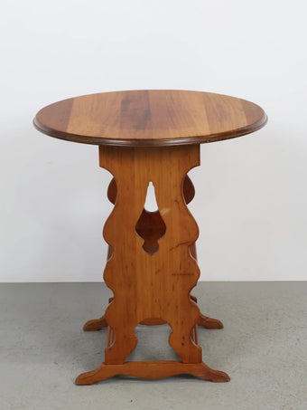 ラウンド天板に、緩やかな曲線を描く脚部デザインが特徴的で、シンプルながらもどこか温かみを感じさせる佇まい。
