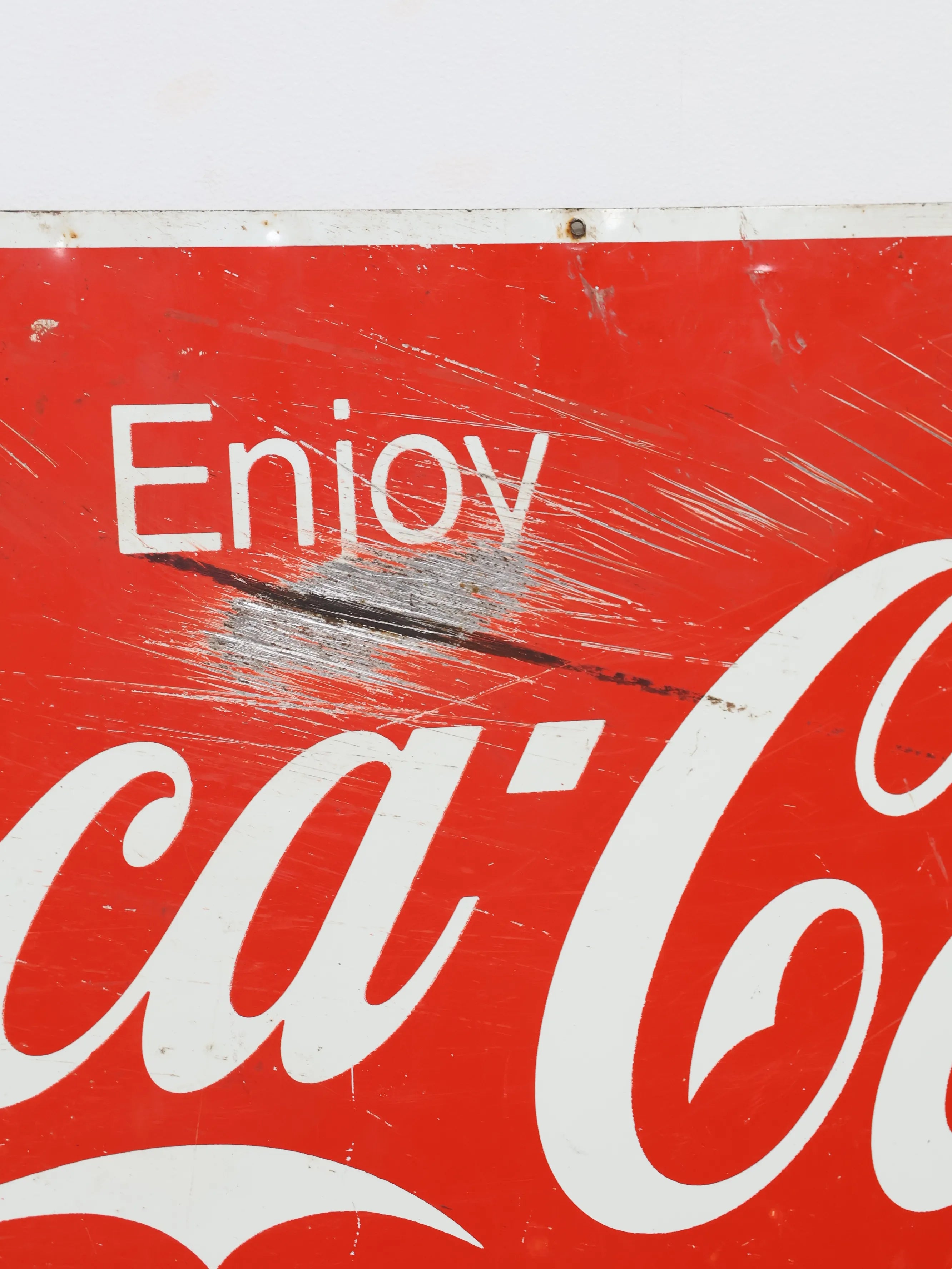 Coca-Colaアイテムの中でも定番かつ人気の高いサインアイテムは、インテリアとして取り入れやすく、初めてのアドバタイジングヴィンテージにもおすすめの一枚です。