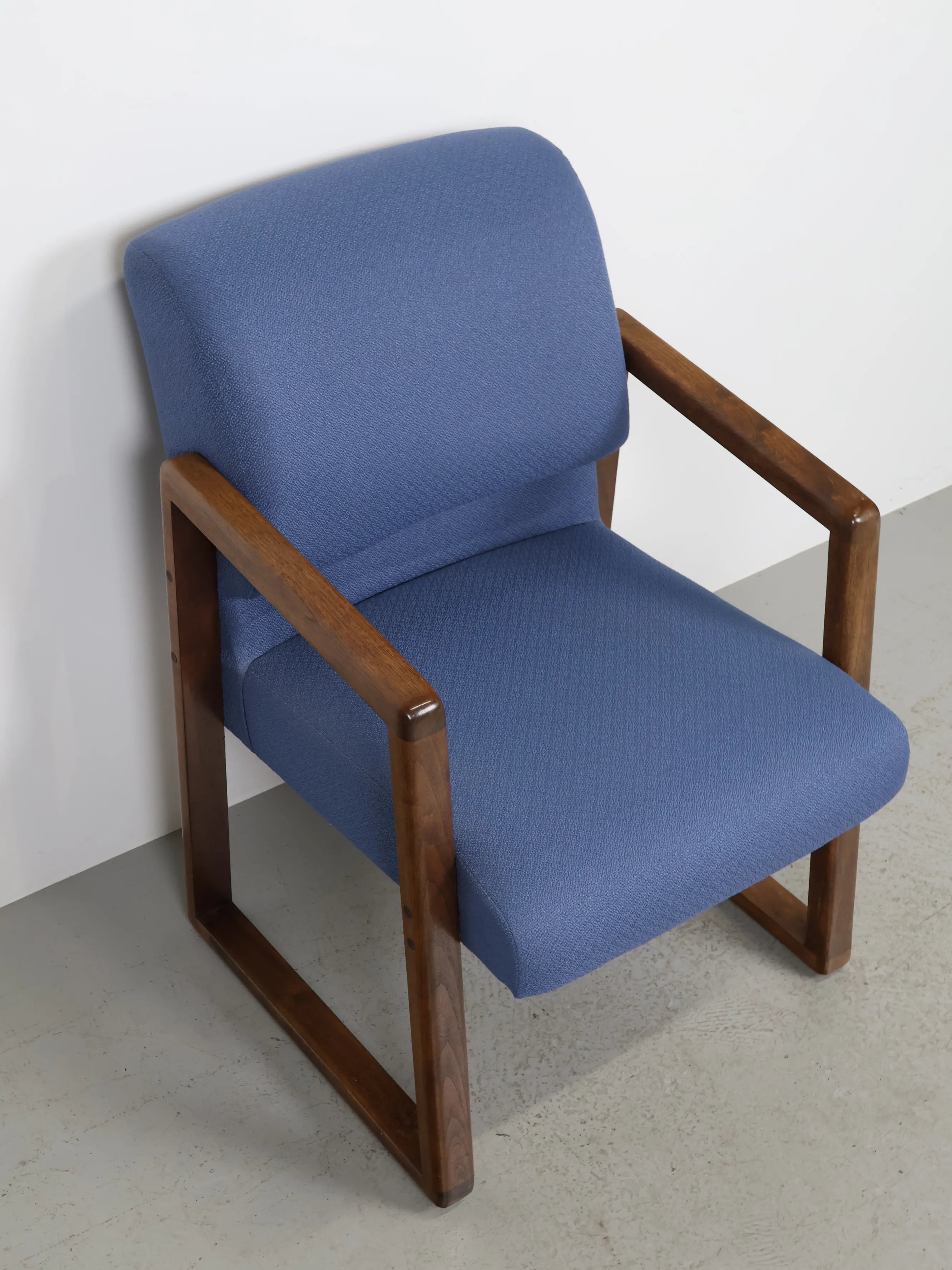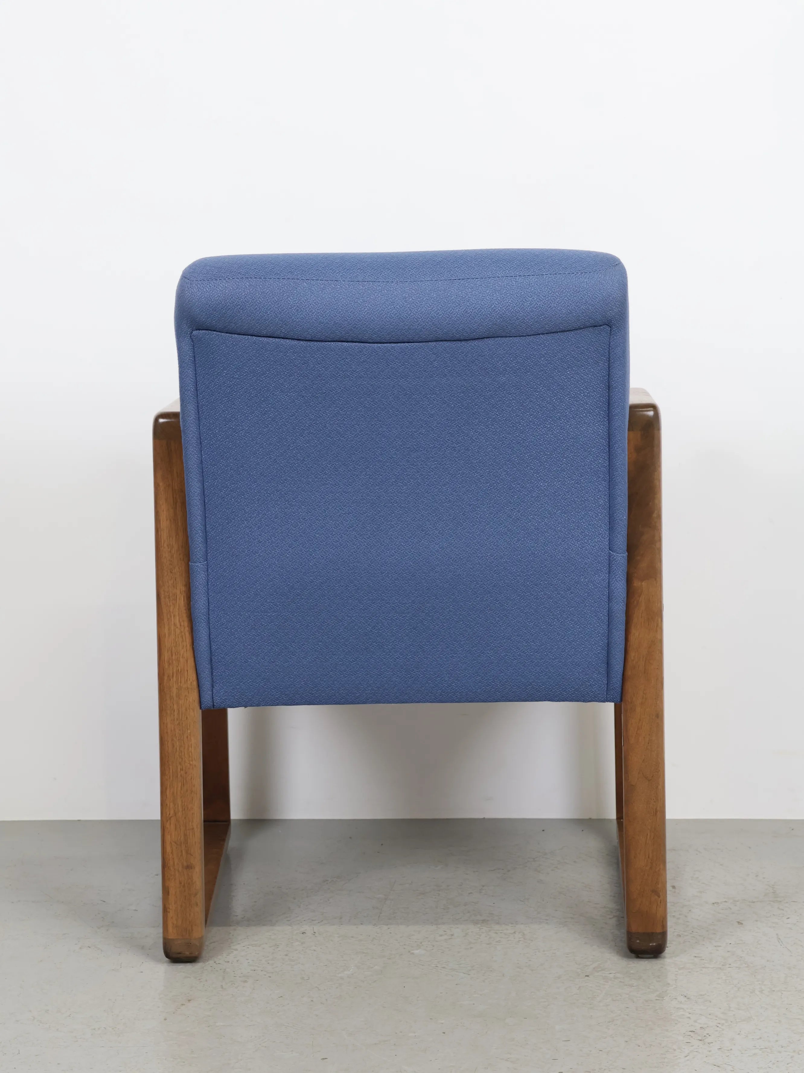 1990年代 ヴィンテージ ウッドフレーム ブルーファブリック アームチェア イス