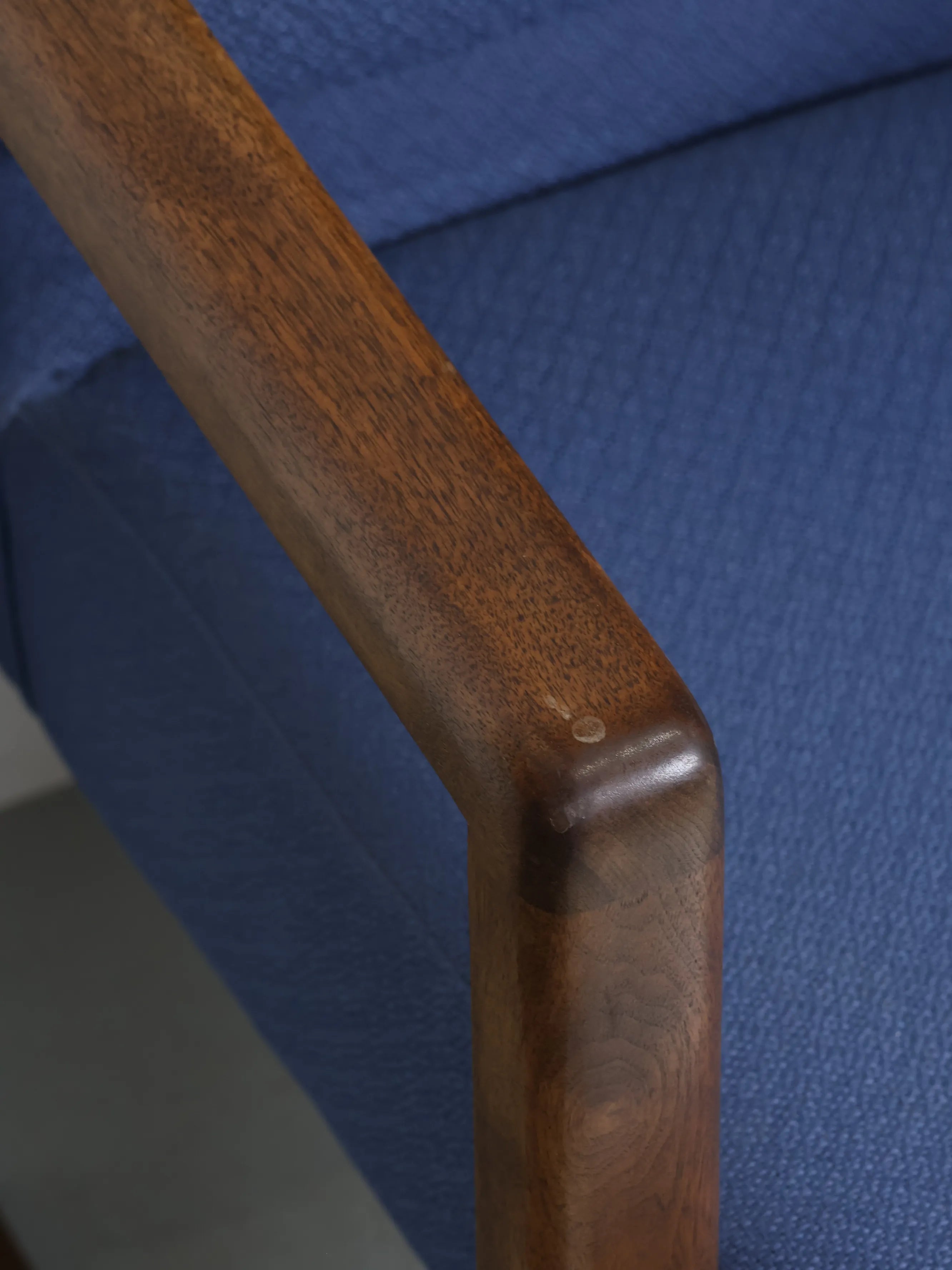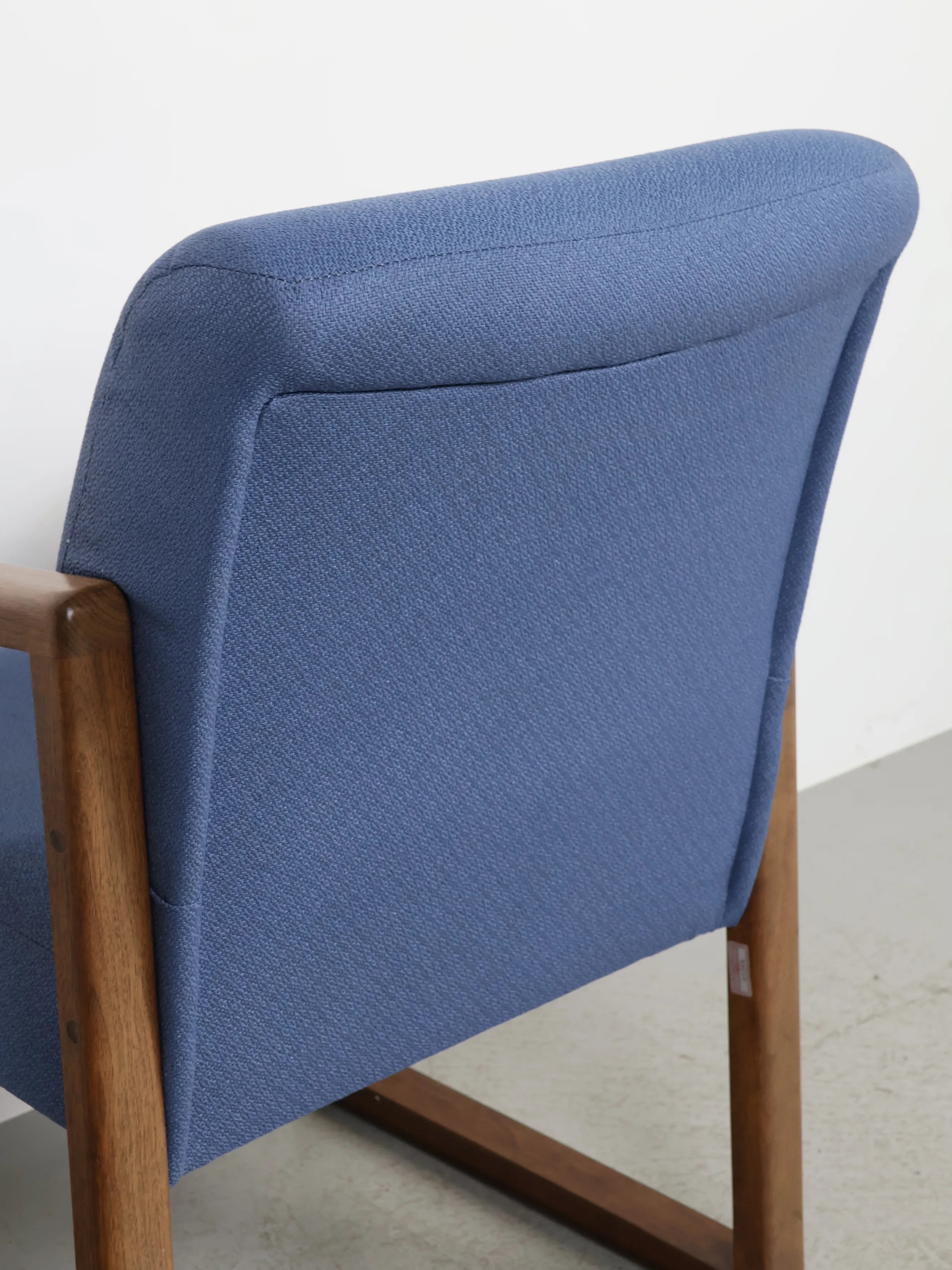 アメリカより買い付けました1990年代のヴィンテージウッドフレームブルーファブリックアームチェアです。