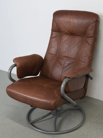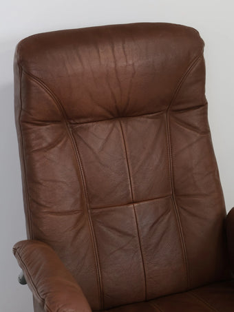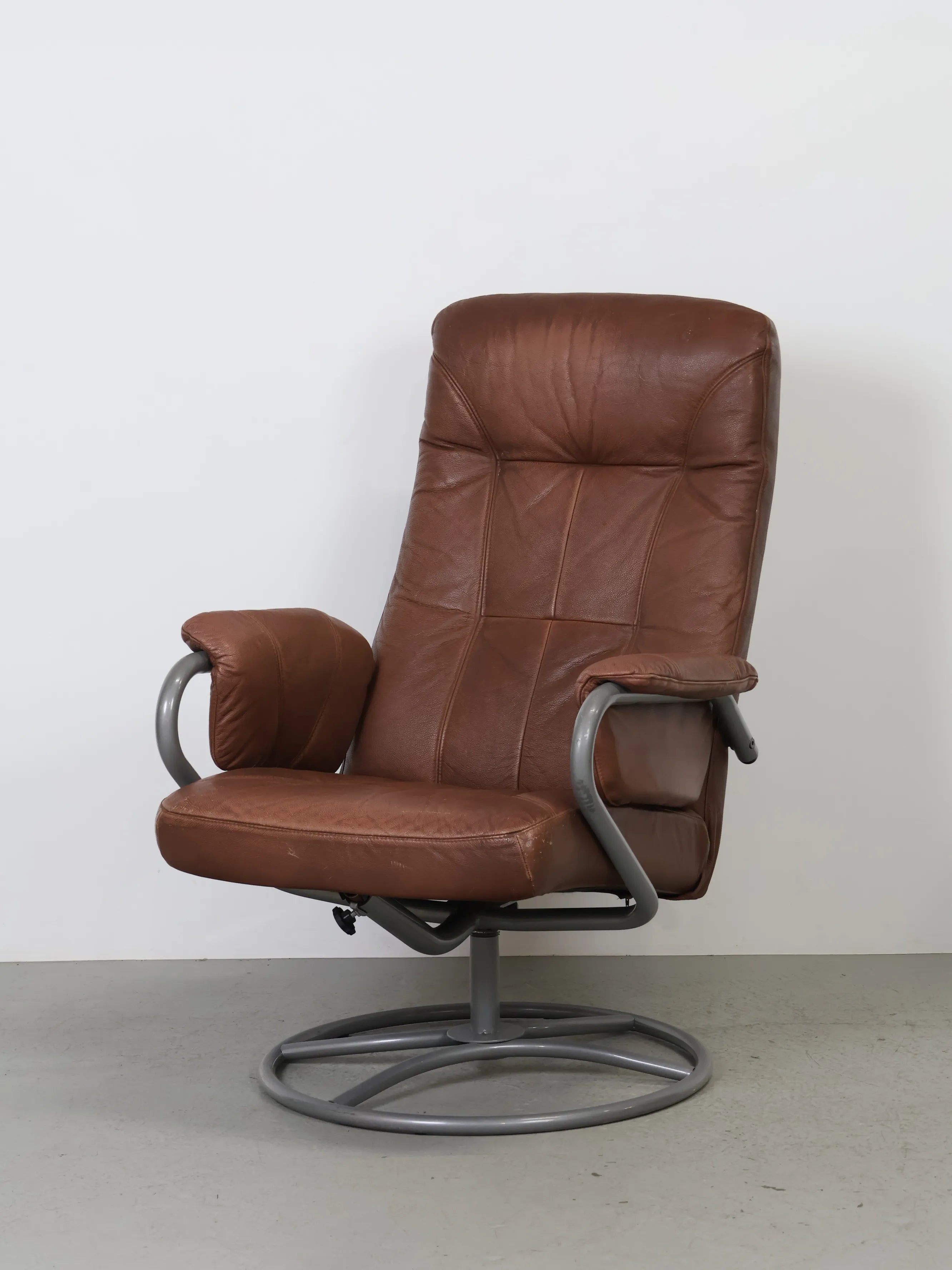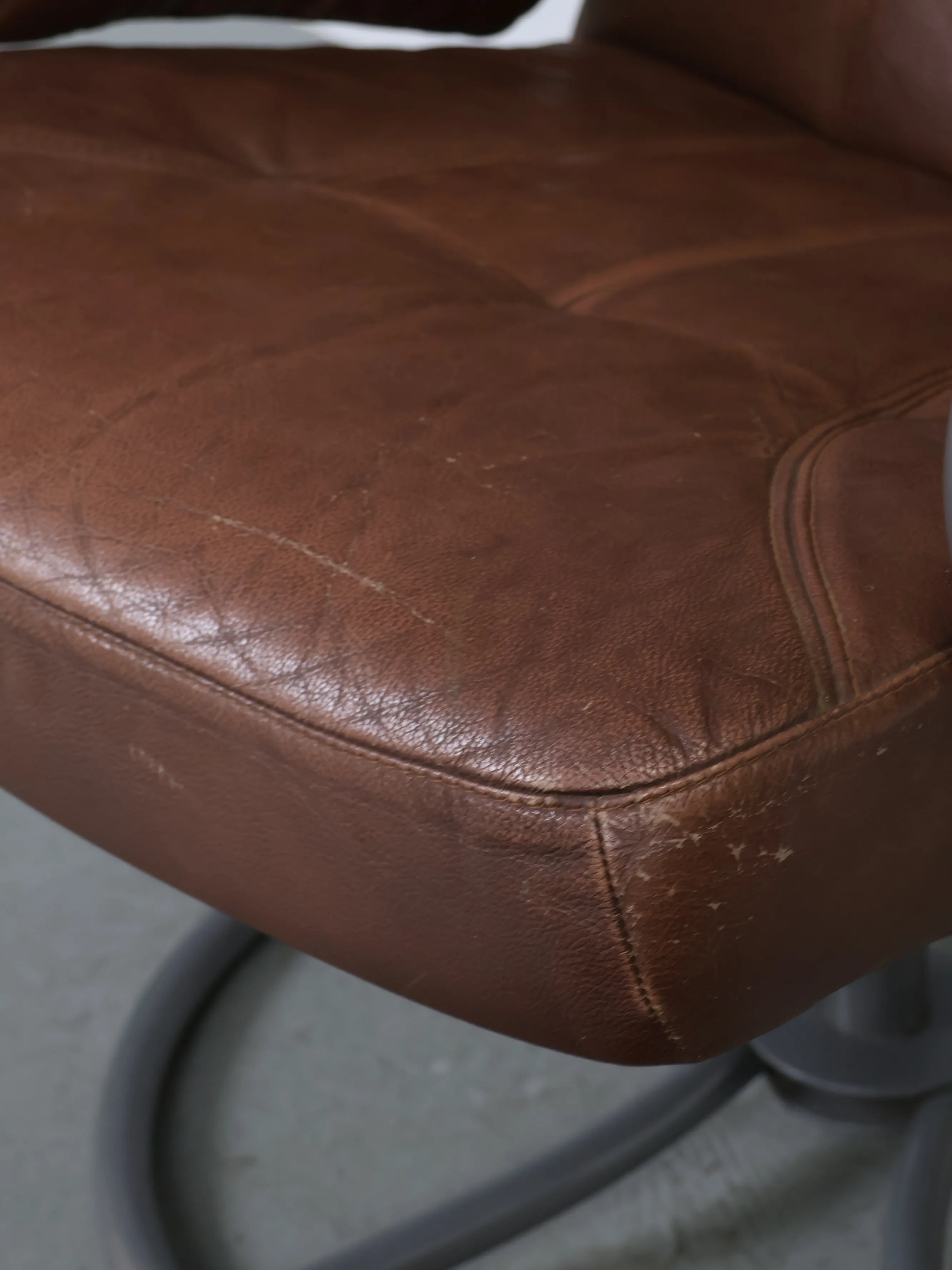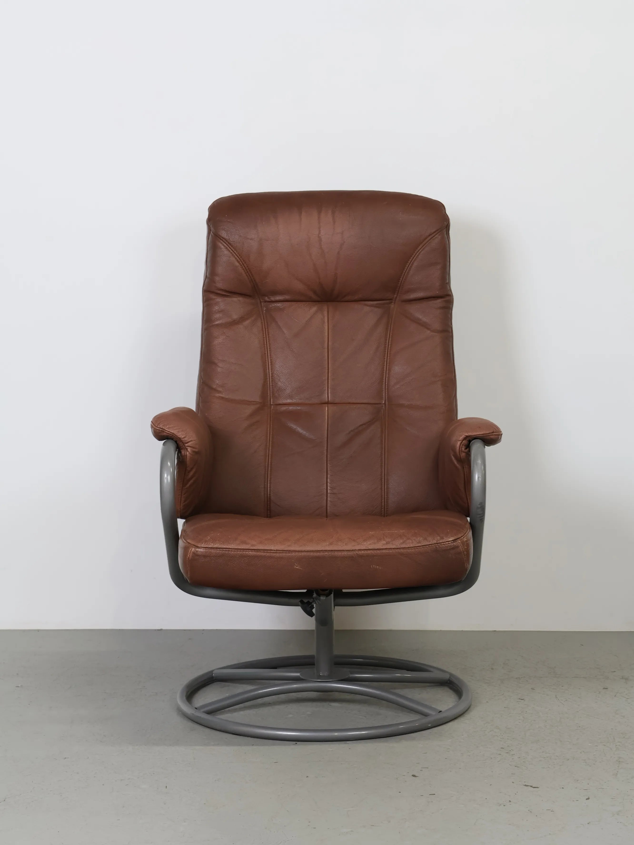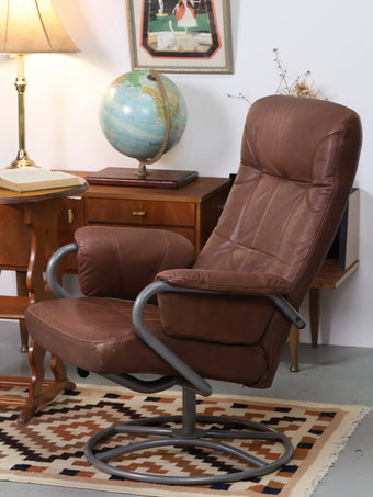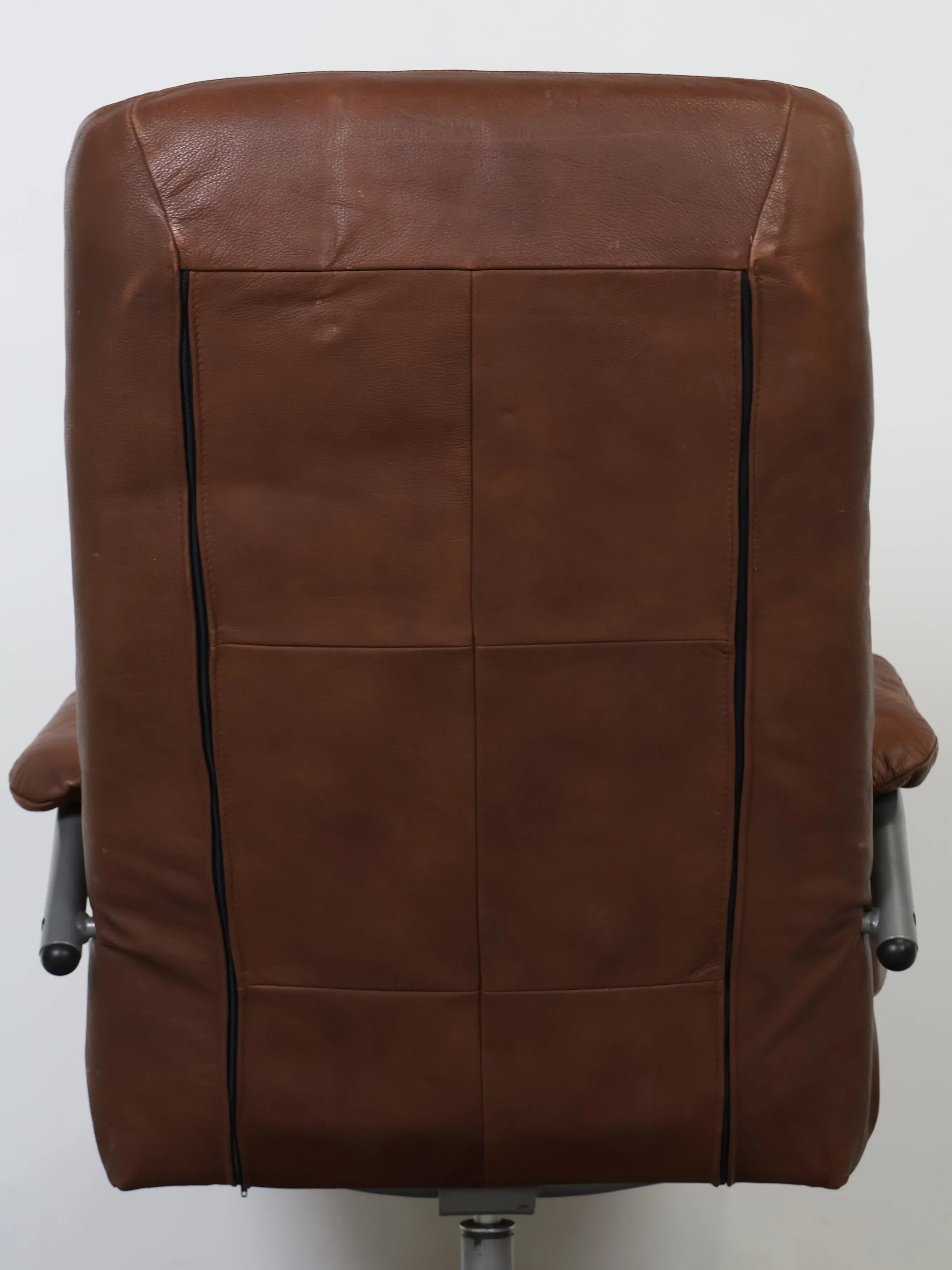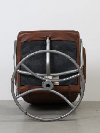 レザーシートと、ゆったりとしたフォルムが印象的な一脚。