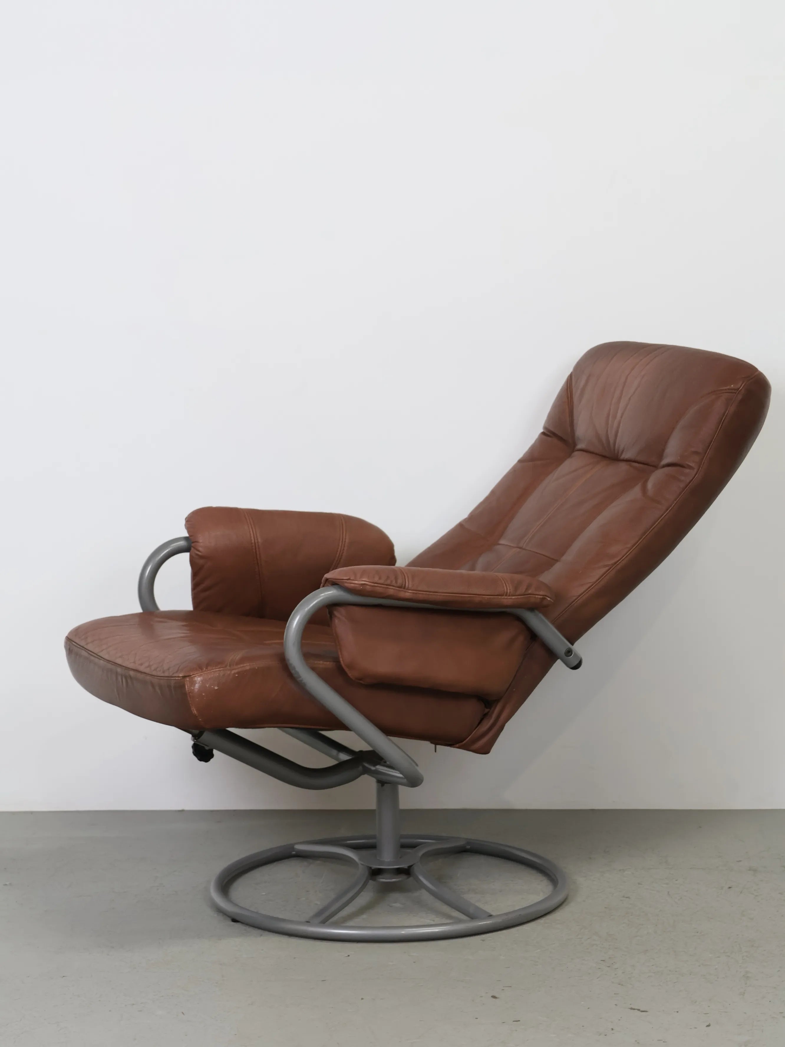 ハンガリーより買い付けました1990年代 IKEA製 ヴィンテージ メタルフレーム レザー アームチェアです。